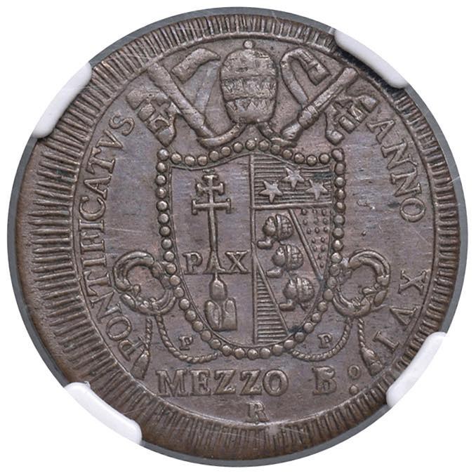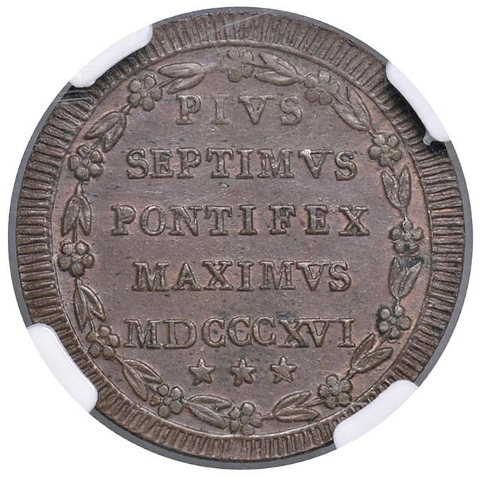 Pio VII (1800-1823) Mezzo baiocco 1816 A. XVI - Nomisma 288 CU In slab NGC MS 63 BN 2769684-015