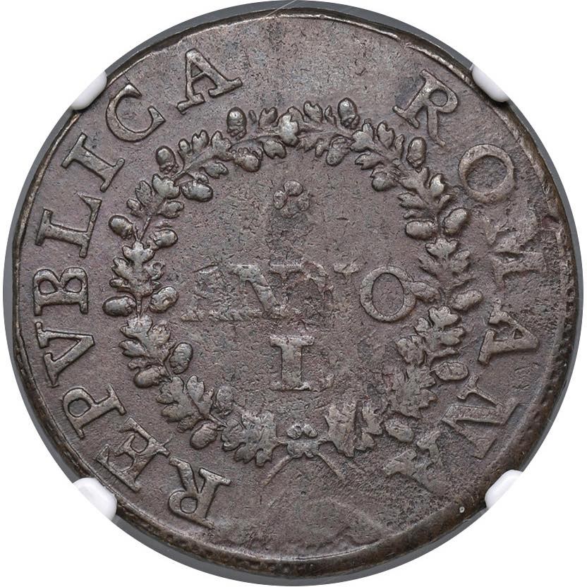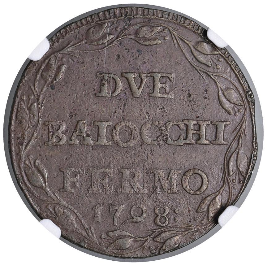 Repubblica romana (1798-1799) Fermo - 2 Baiocchi 1798 - Bruni 21 CU RRR In slab NGC AU 55 BN cod. 4566604-003