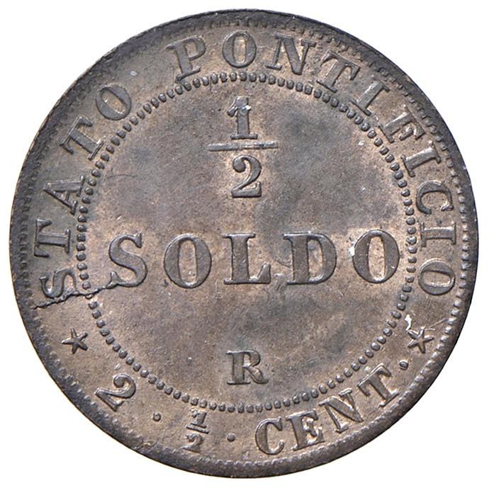 Pio IX (1846-1878) Mezzo Soldo 1866 An. XXI - Nomisma 905 CU (g 2,48) NC Lievi macchiette al R/.