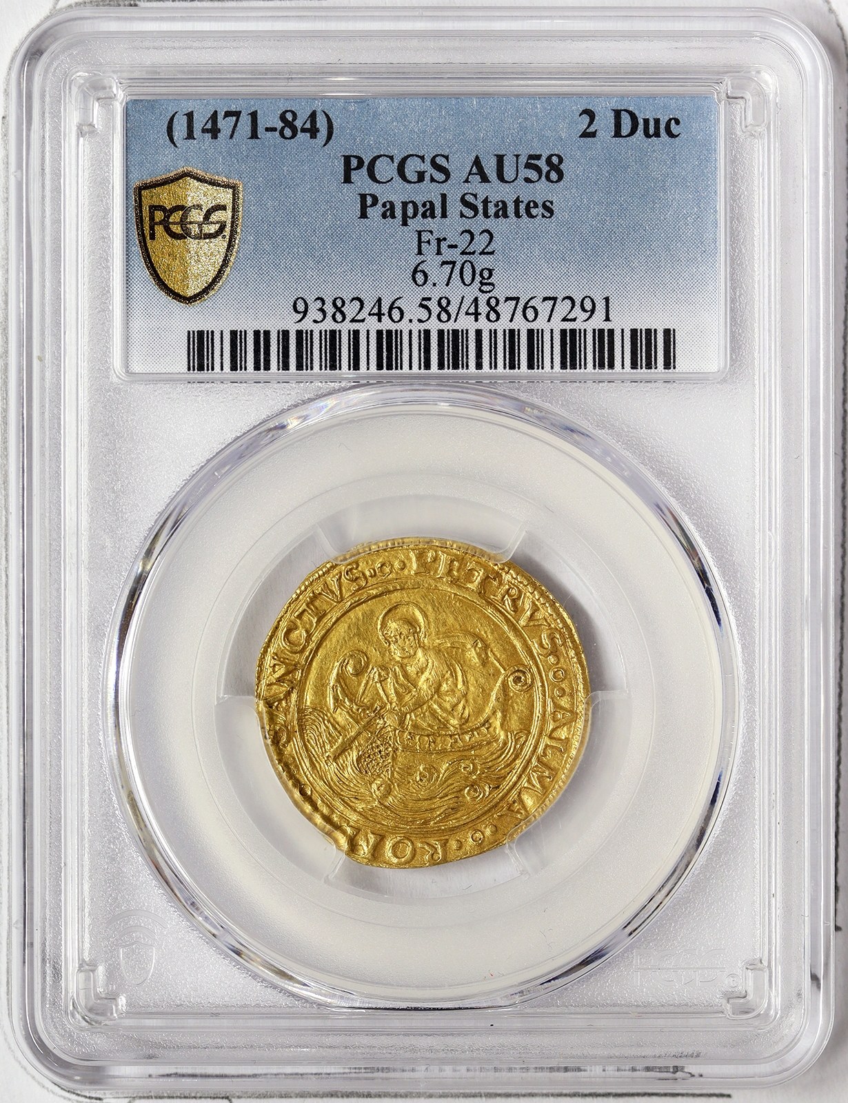 The PCGS label is wrong, the description is of a 2 ducati from Sisto IV! Great quality for the type. Au. 6,70 g Very Rare TOP POP.