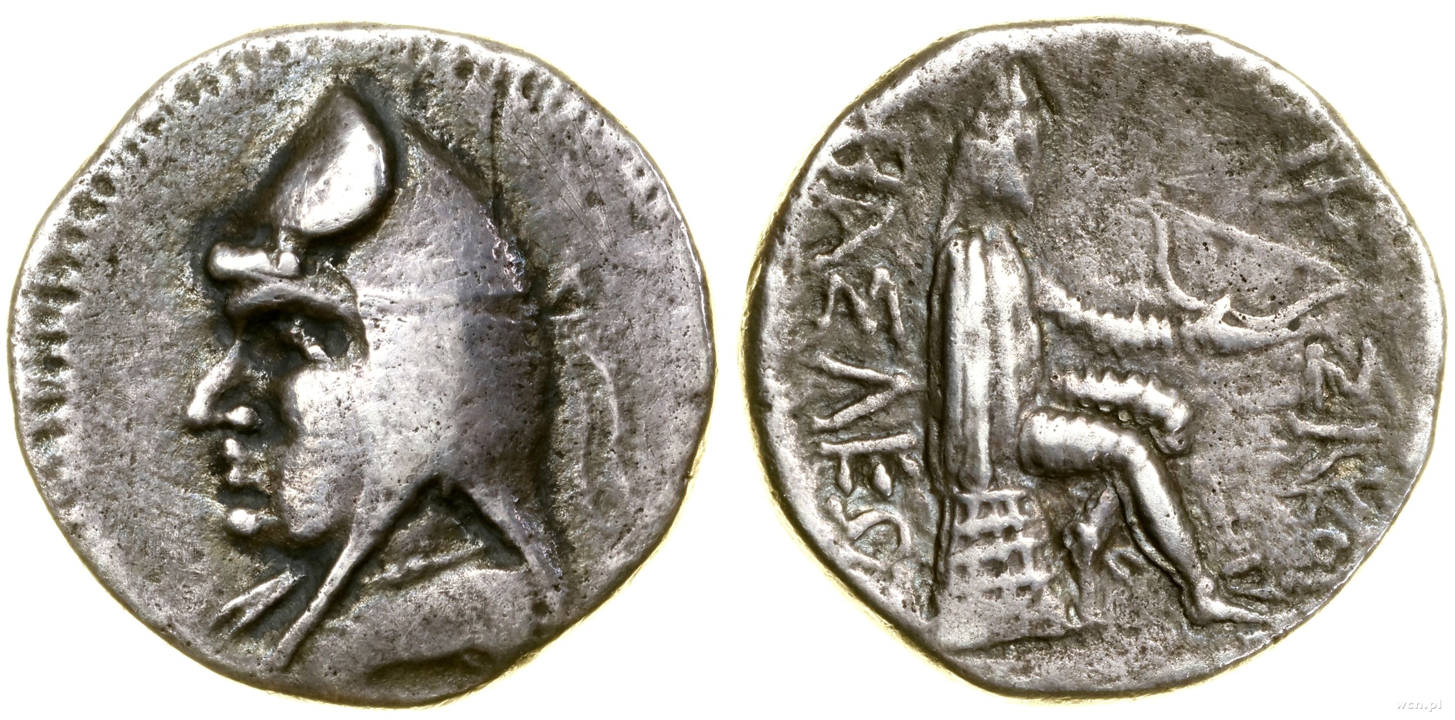 Aw: Popiersie władcy w lewo, Rw: Arsakes I (pierwszy król Partów) na tronie skierowany w prawo z łukiem w ręku, ΑΡΣΑΚΟV / ΒΑΣΙΛΕΩΣ