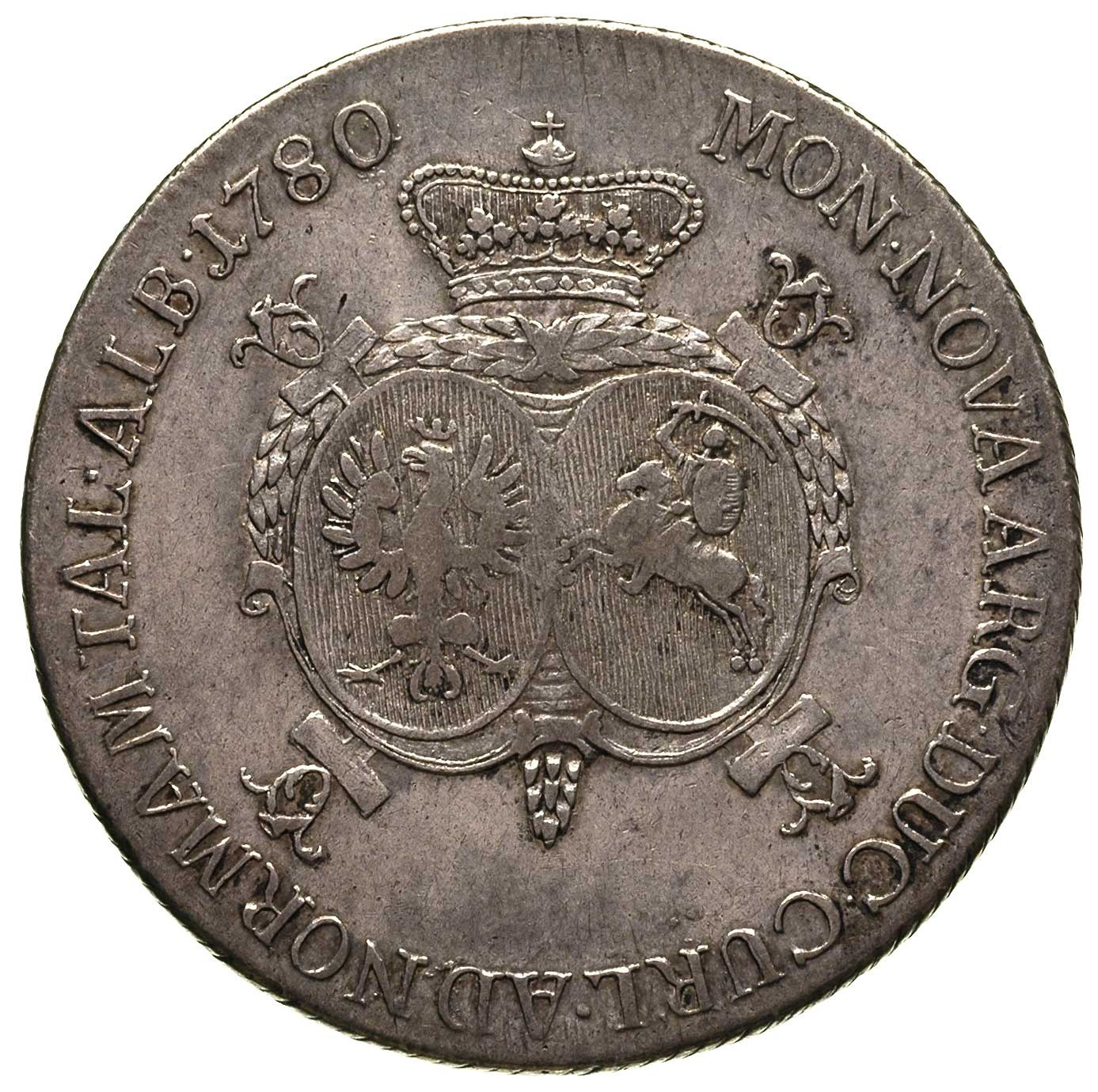 KSIĘSTWO KURLANDII, Piotr Biron 1769-1795, talar 1780, Mitawa, Gerbaszewski 7.1.1.1, Dav. 1624, wada blachy