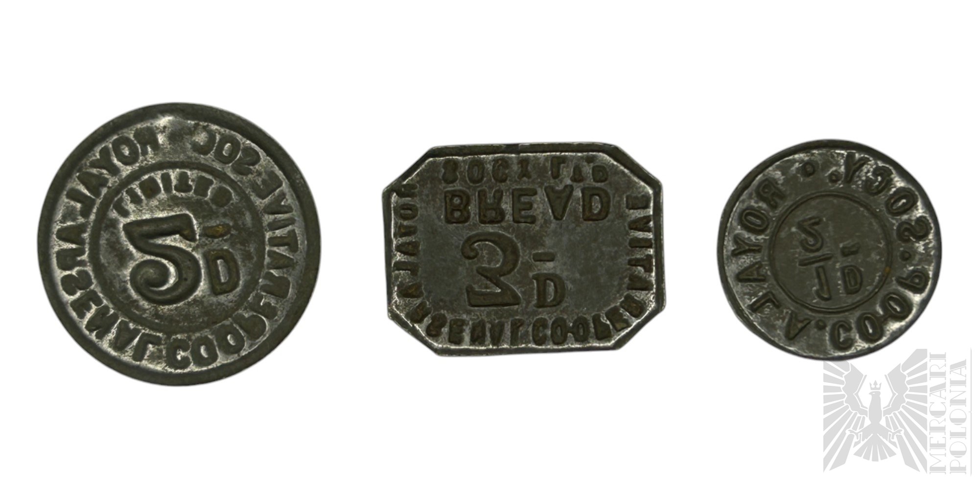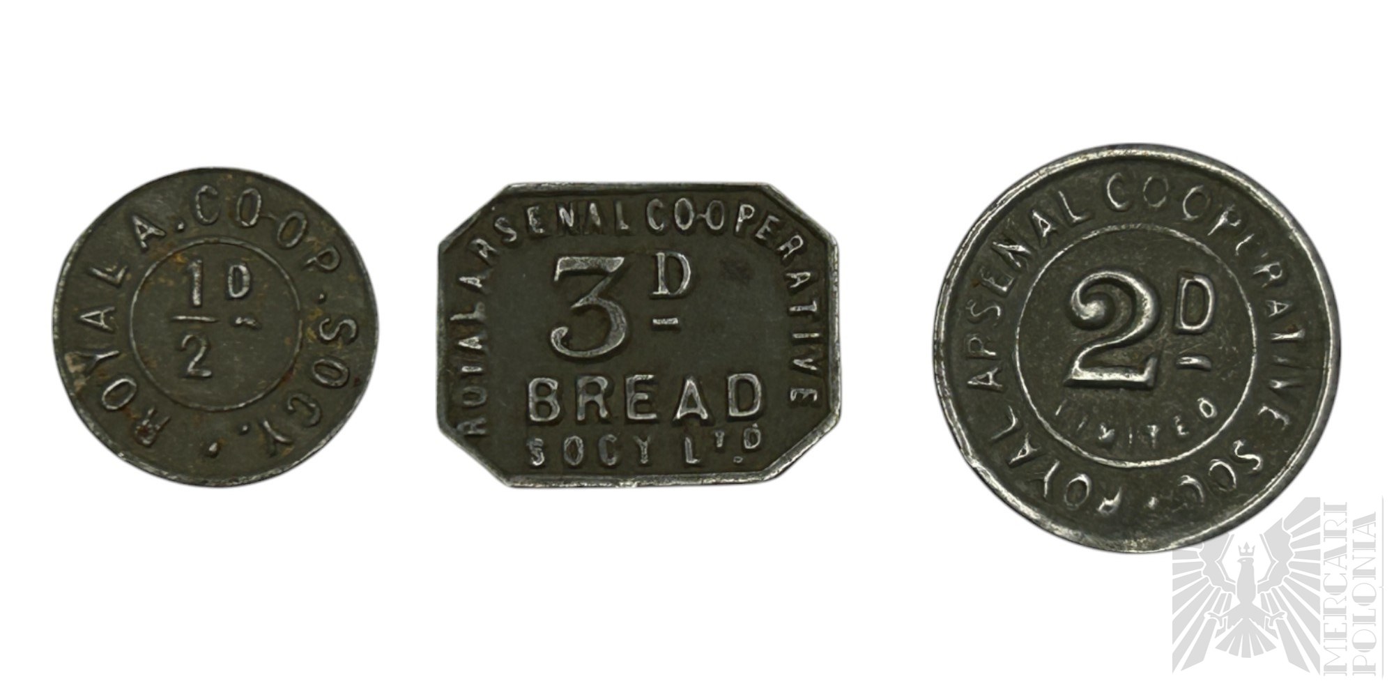 Pocz. XX w., Wielka Brytania - Zestaw Żetonów Royal Arsenal Cooperative Society o Nominałach ½d, 2d, 3d i 5d