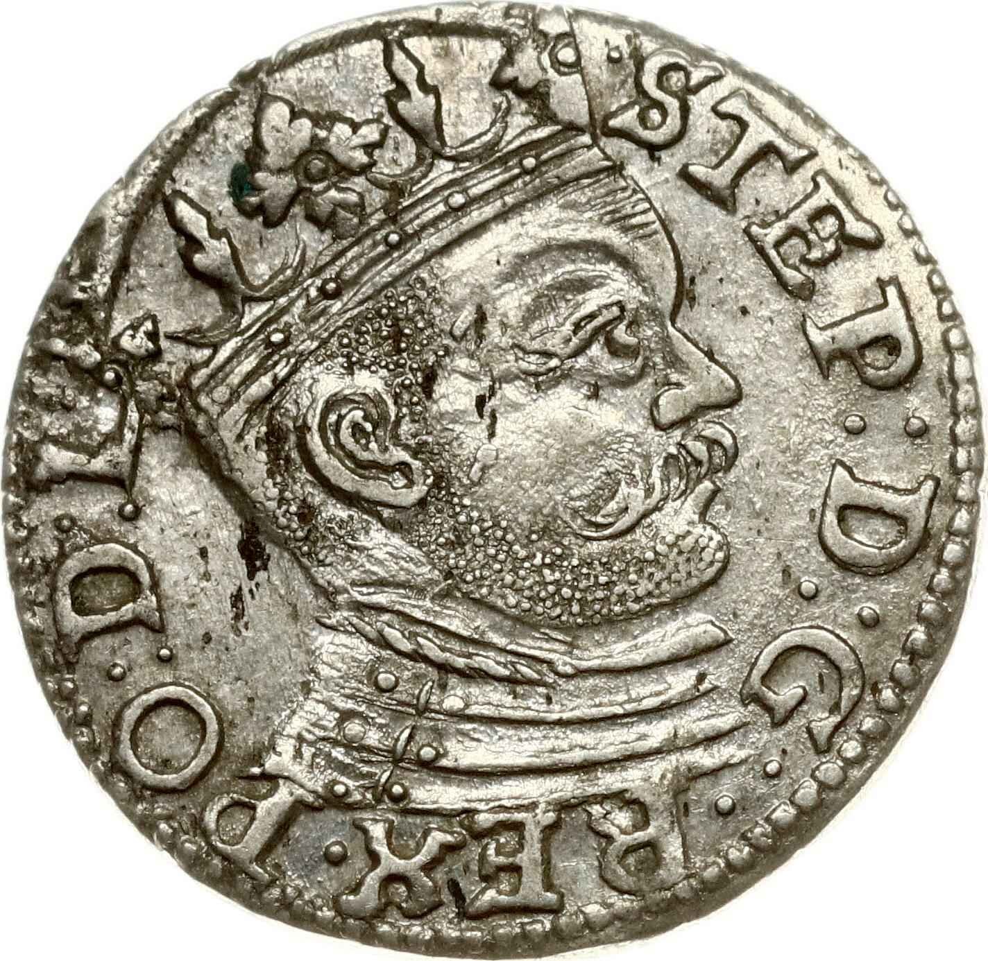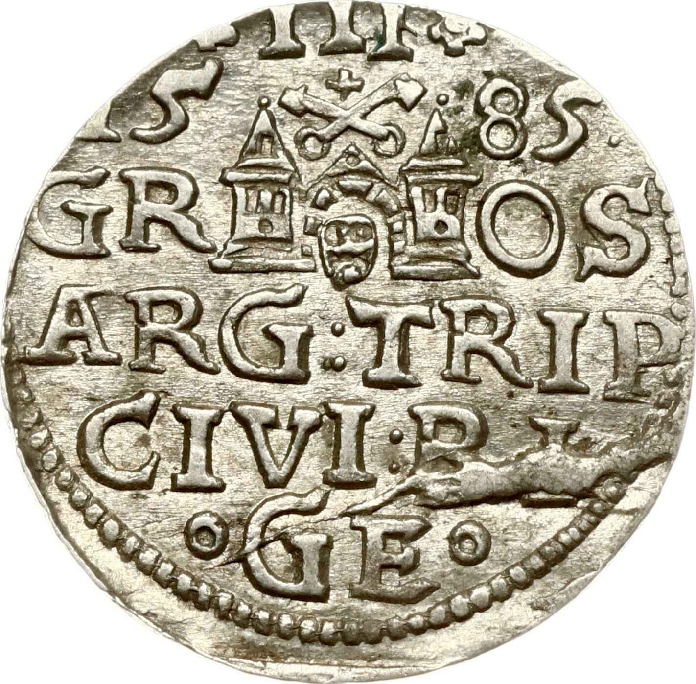 Poland 3 Groszy 1585 Riga. Stephen Bathory(1576�1586). Silver 2.31g. Iger R.85