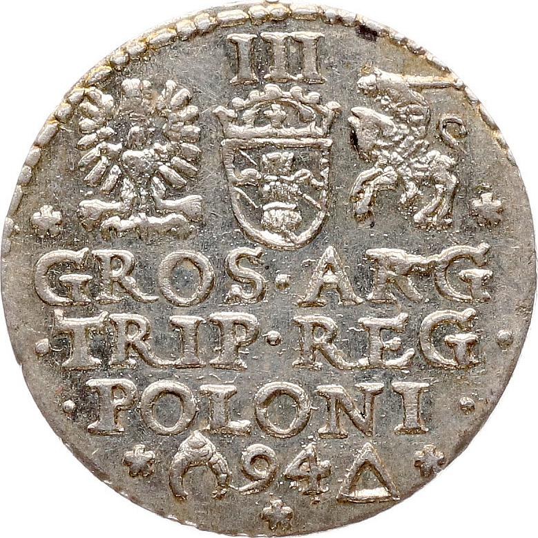 Poland 3 Groszy 1594 Malbork. Sigismund III Vasa (1587-1632). Obverse: Crowned bust right. Reverse: Value; divided date; symbols and two-line inscription between. Silver. Iger M.94.1.b (R1) RARE