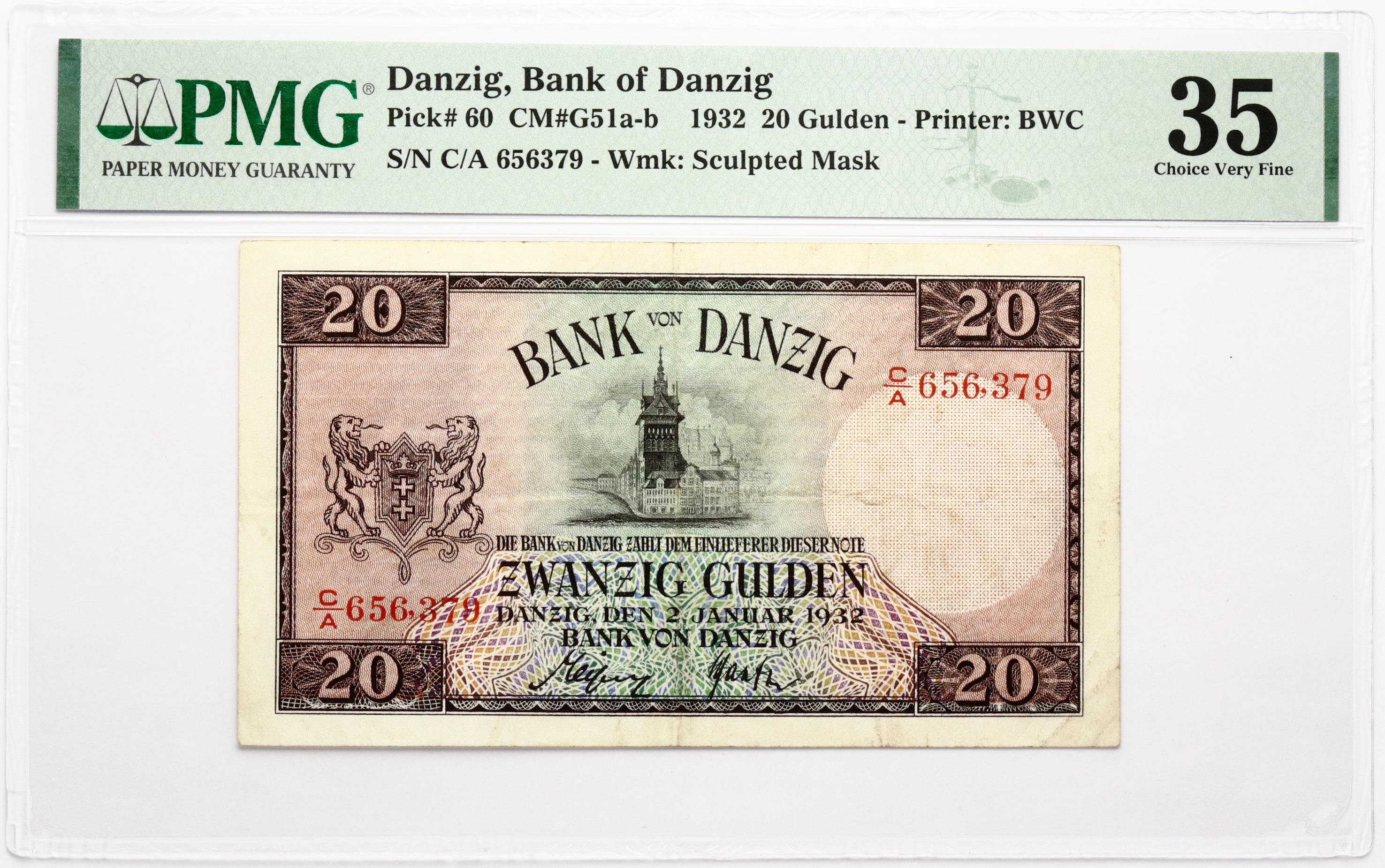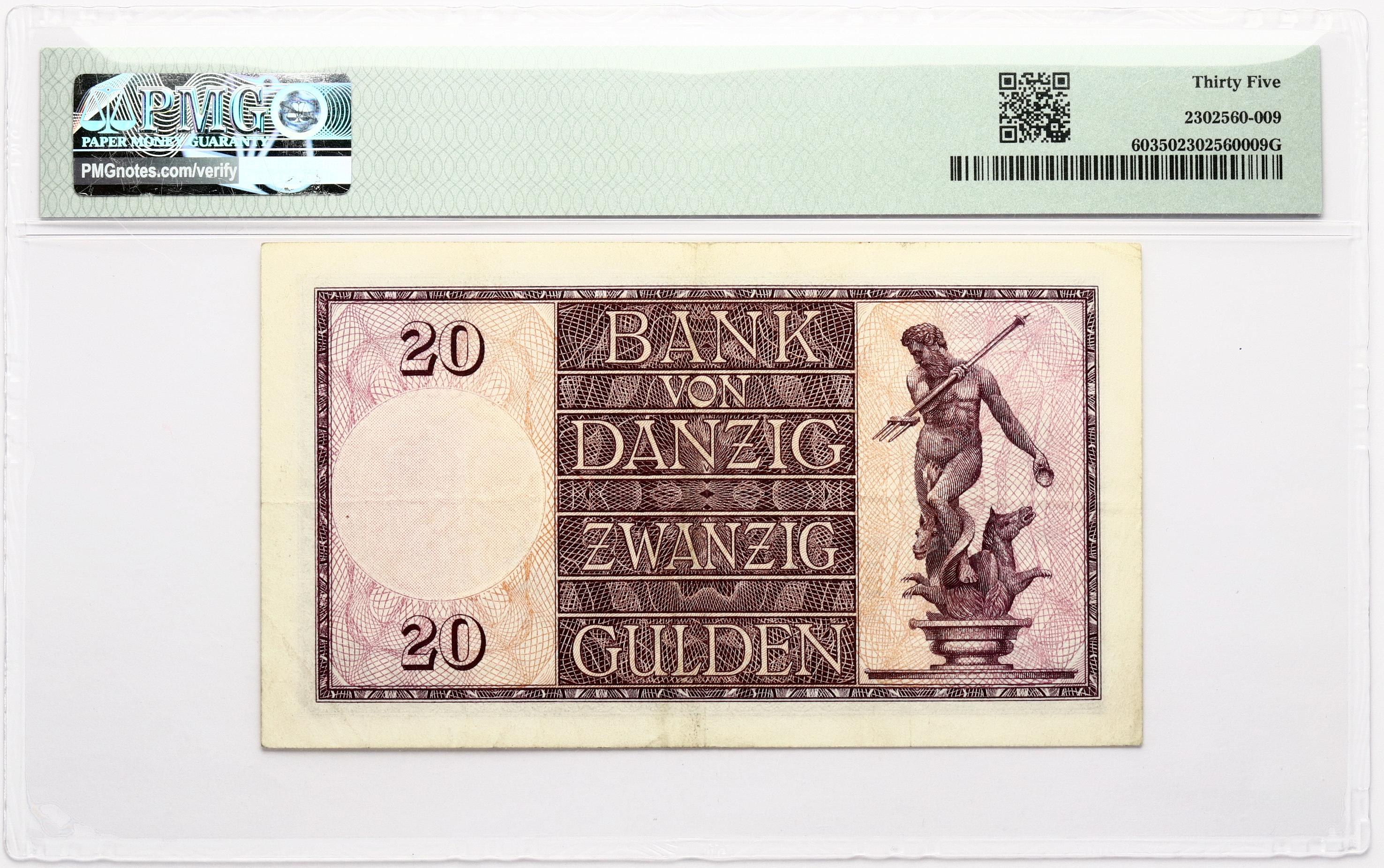 Poland, Danzig. 20 Gulden 1932. Pick#60. S/N C/A 656,379. PMG 35 Choice Very Fine.