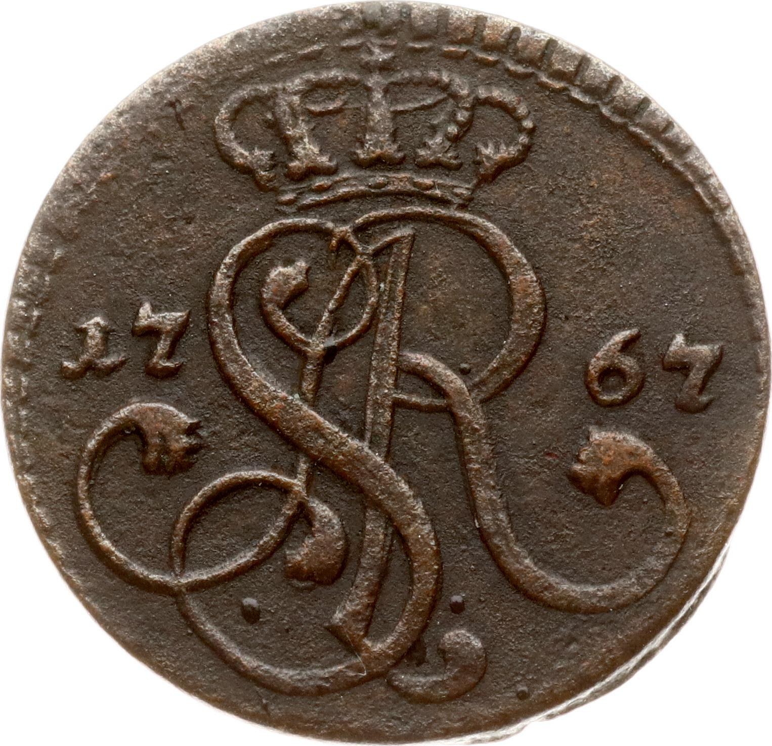 Poland. Stanislaw August Poniatowski (1764–1795). Grosz 1767 G, Krakow. Copper 3.73 g. Kop 2190, KM 177.