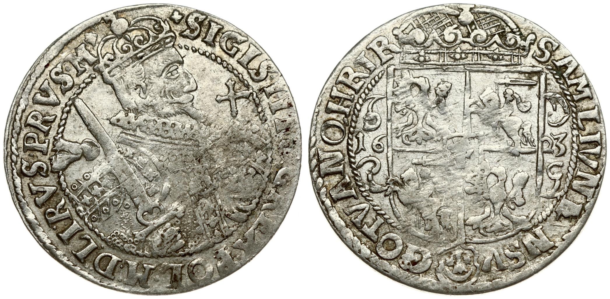 Poland Ort 1623 Bydgoszcz PRVS M+ Zygmunt III Waza (1587-1632). Silver. Shatalin BD23-18.