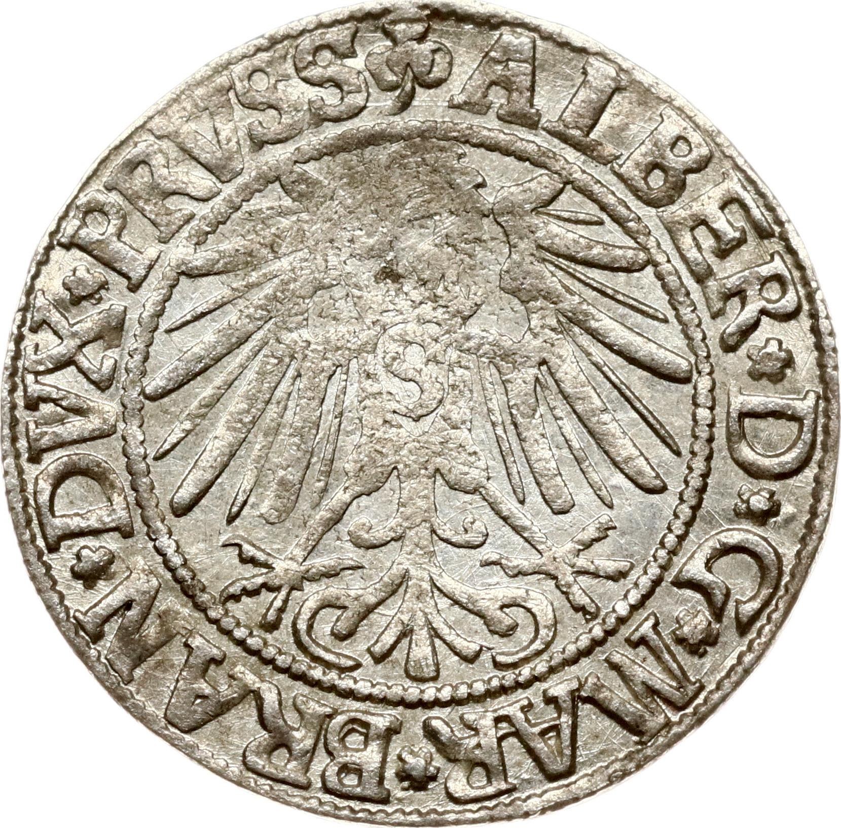 Poland, Prussia (under Poland). Albert Hohenzollern (1525–1568). Grosz 1543 Konigsberg Silver 1.83 g. Small scratches. Kop. 3785.
