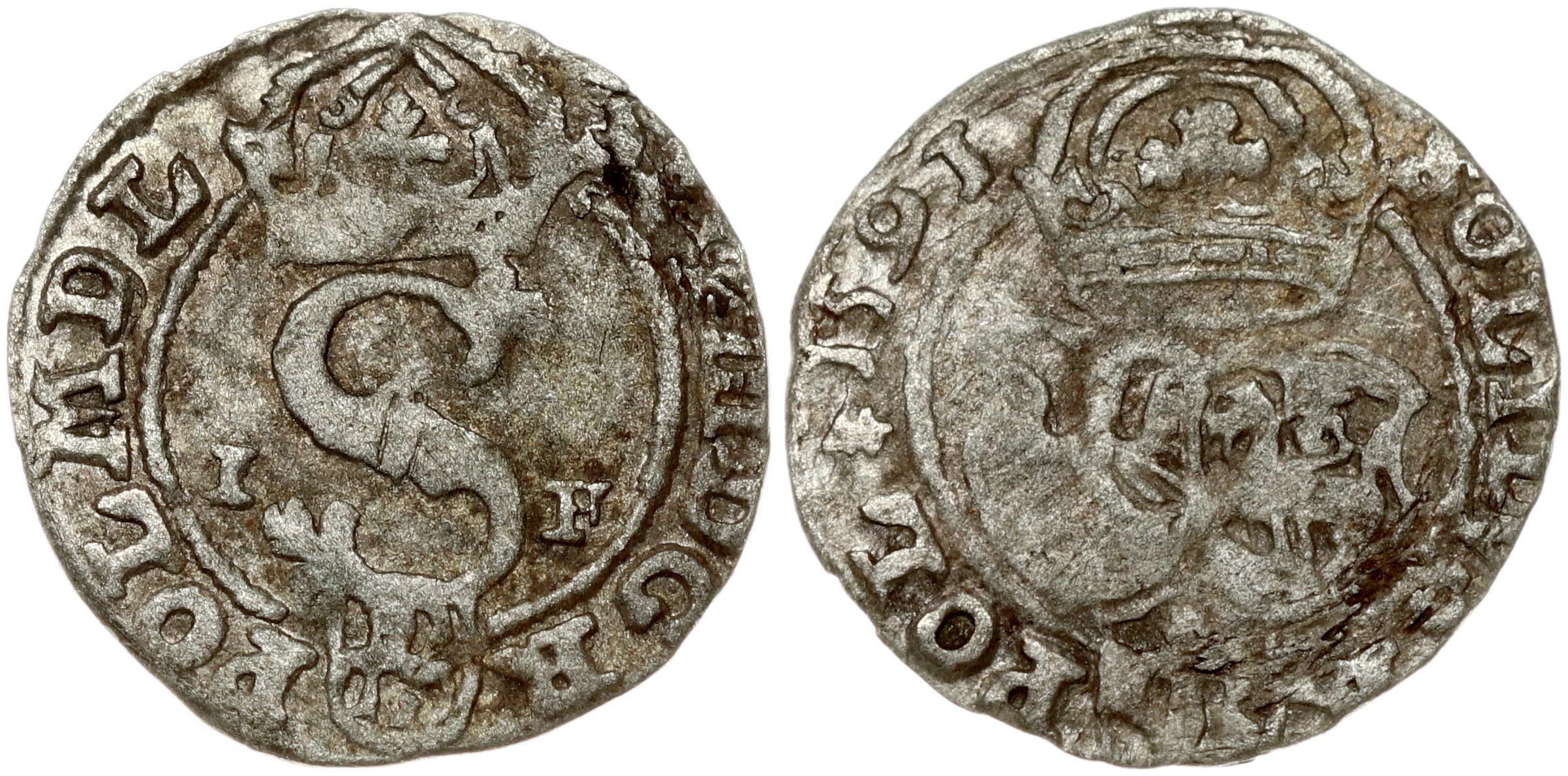 Poland Szelag 1591 Poznan. Zygmunt III Waza (1587-1632). Bil. Kop. 614 (R1).