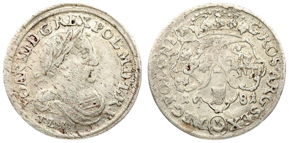 Poland Szostak 1681 TLB Bydgoszcz. Jan III Sobieski (1674–1696). Silver. Kop. 1953