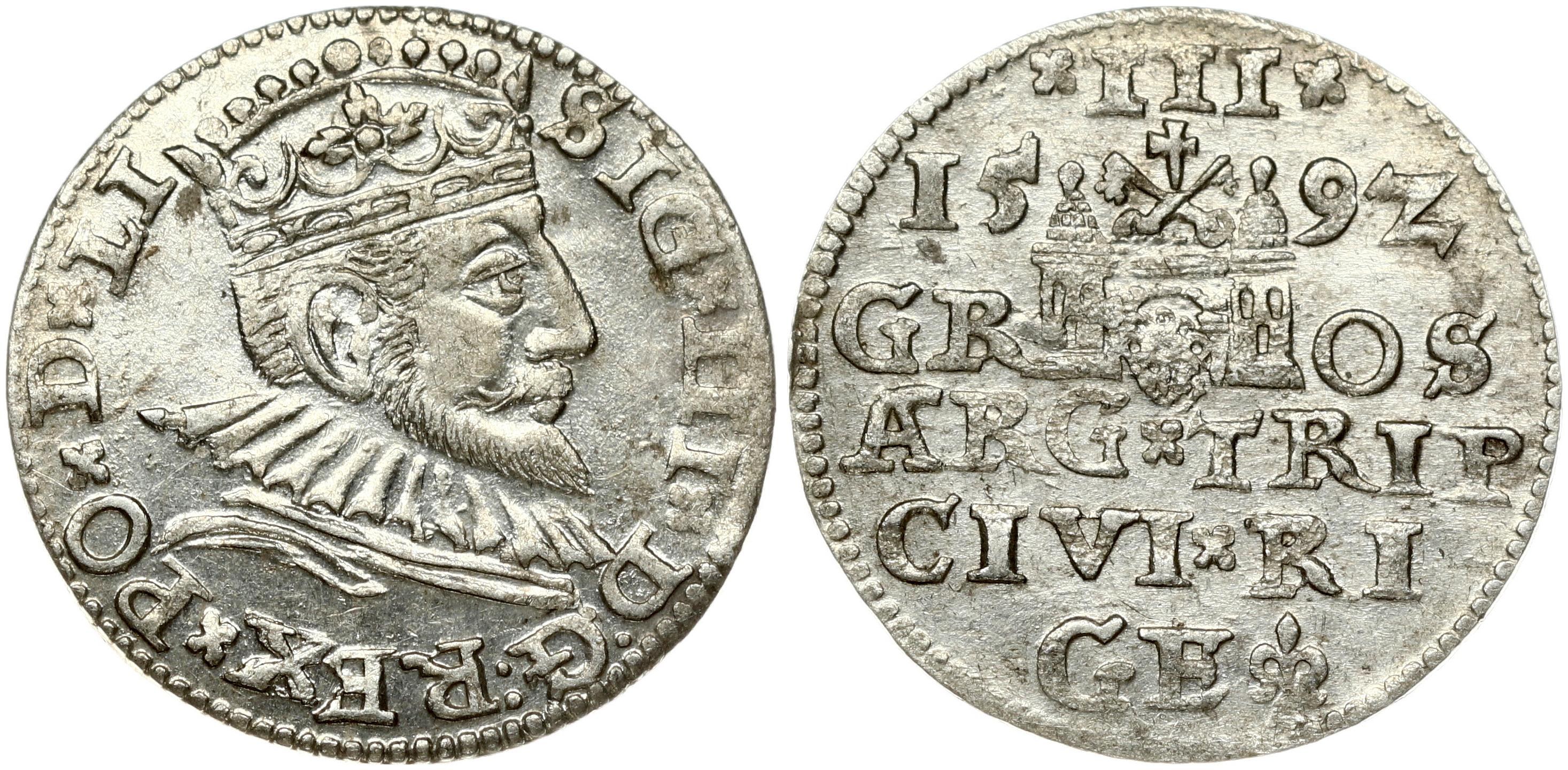 Poland Trojak 1592 Riga. Zygmunt III Waza (1587-1632). Silver. Iger R.92.1.b