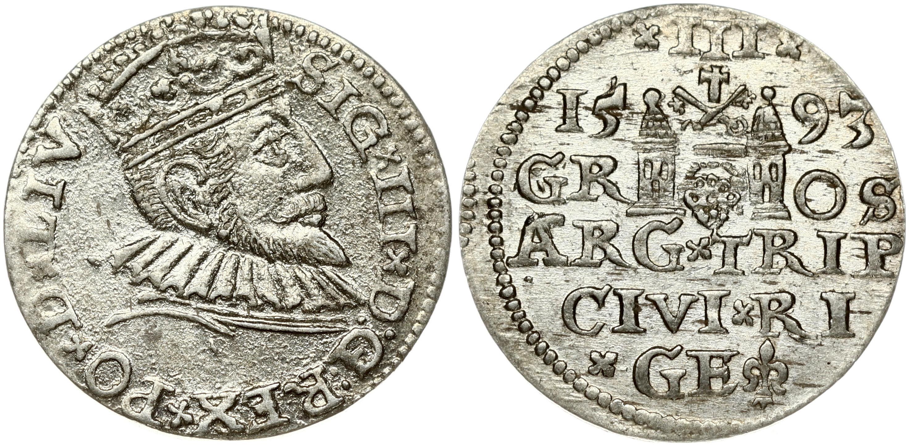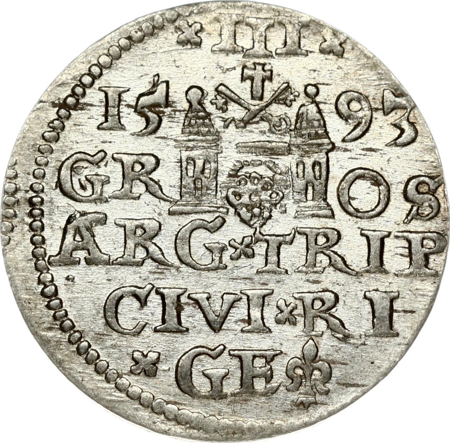 Poland Trojak 1593 Riga. Zygmunt III Waza (1587-1632). Silver. Iger R.93.1.c