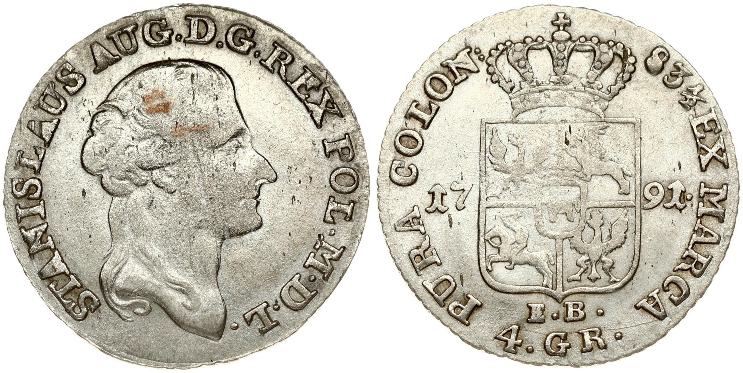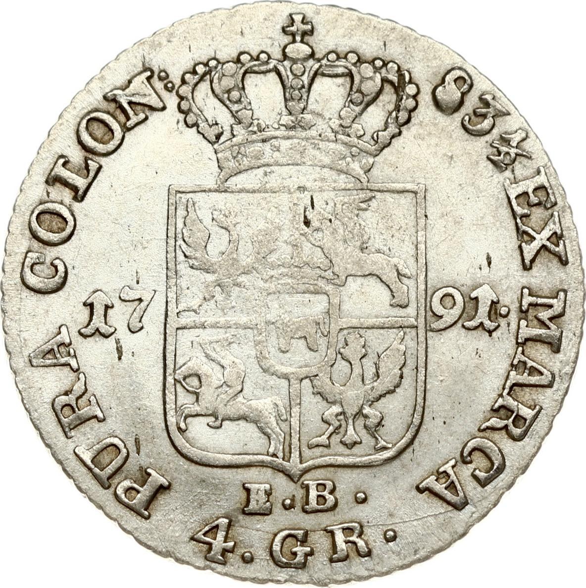Poland Zloty (4 Groszy) 1791 EB, Warsaw mint. Stanislaw August Poniatowski (1764-1795). Silver. Kop. 2380.