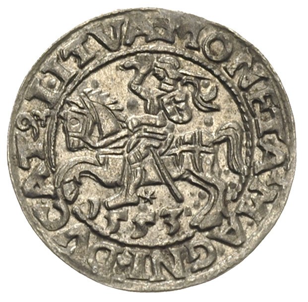 Zygmunt II August 1545-1572, półgrosz 1553, Wilno, mniejsze cyfry daty, Ivanauskas 4SA50-16, T. 5, rzadki