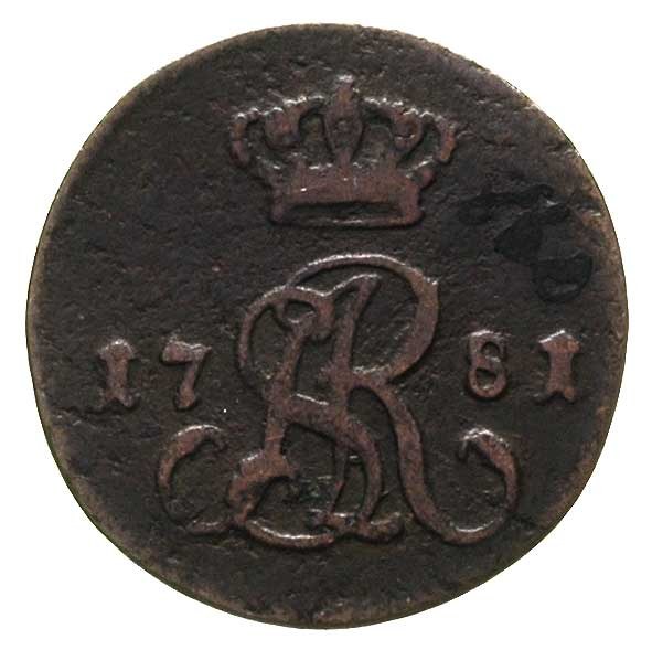 Stanisław August Poniatowski 1764-1795, półgrosz 1781, Warszawa, Plage 19, bardzo rzadki, w cenniku Berezowskiego 8 złotych, patyna