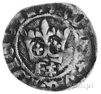 Władysław Jagiełło 1386-1434, półgrosz, Wschowa, Aw: Korona, poniżej F i podwójny krzyż, w otoku napis, Rw: Orzeł i napis, Kop.31,1,2.1,w.c. -rr-,Gum.417, rzadki