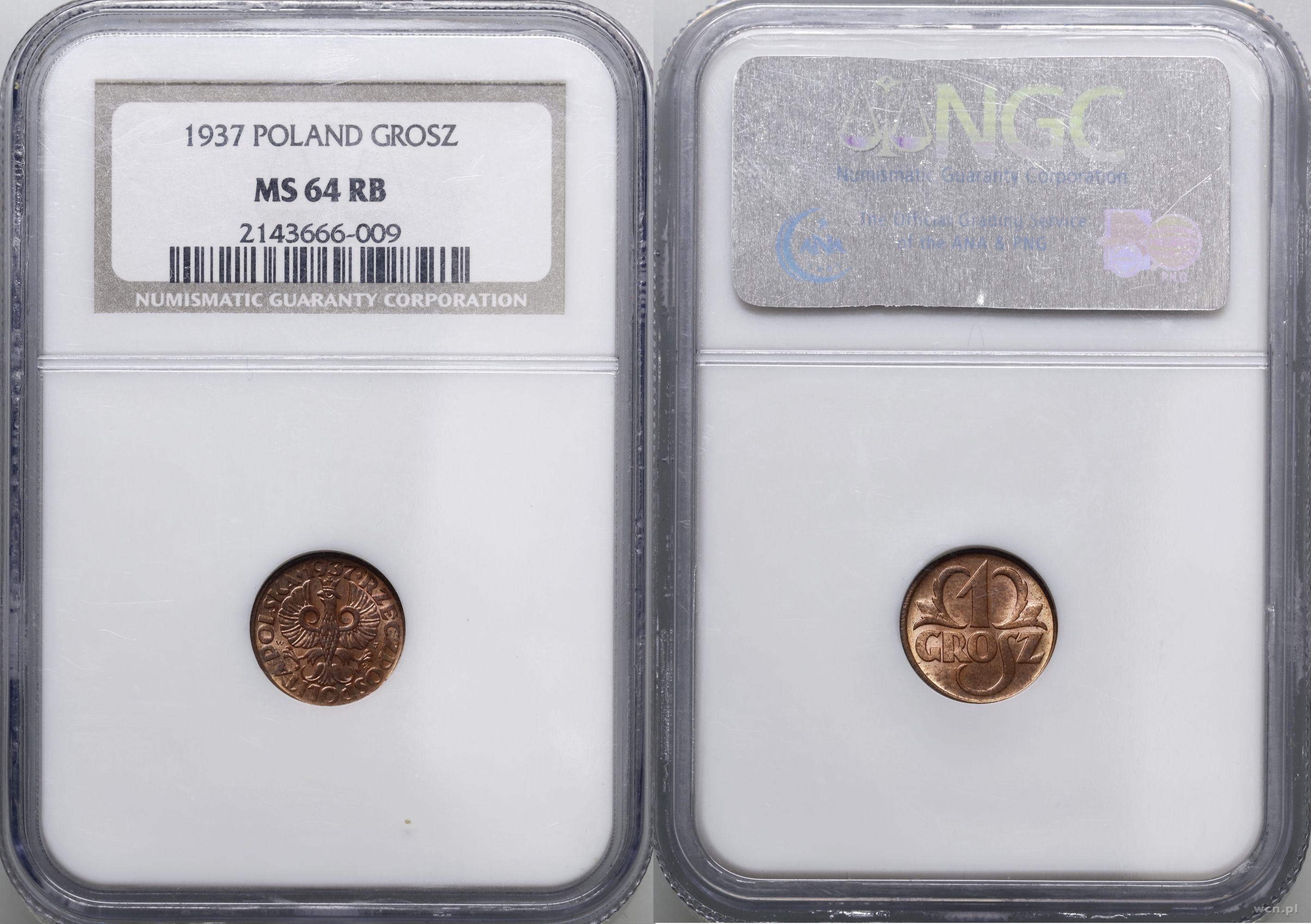 piękna moneta w pudełku NGC 2143666-009 z oceną MS64RB