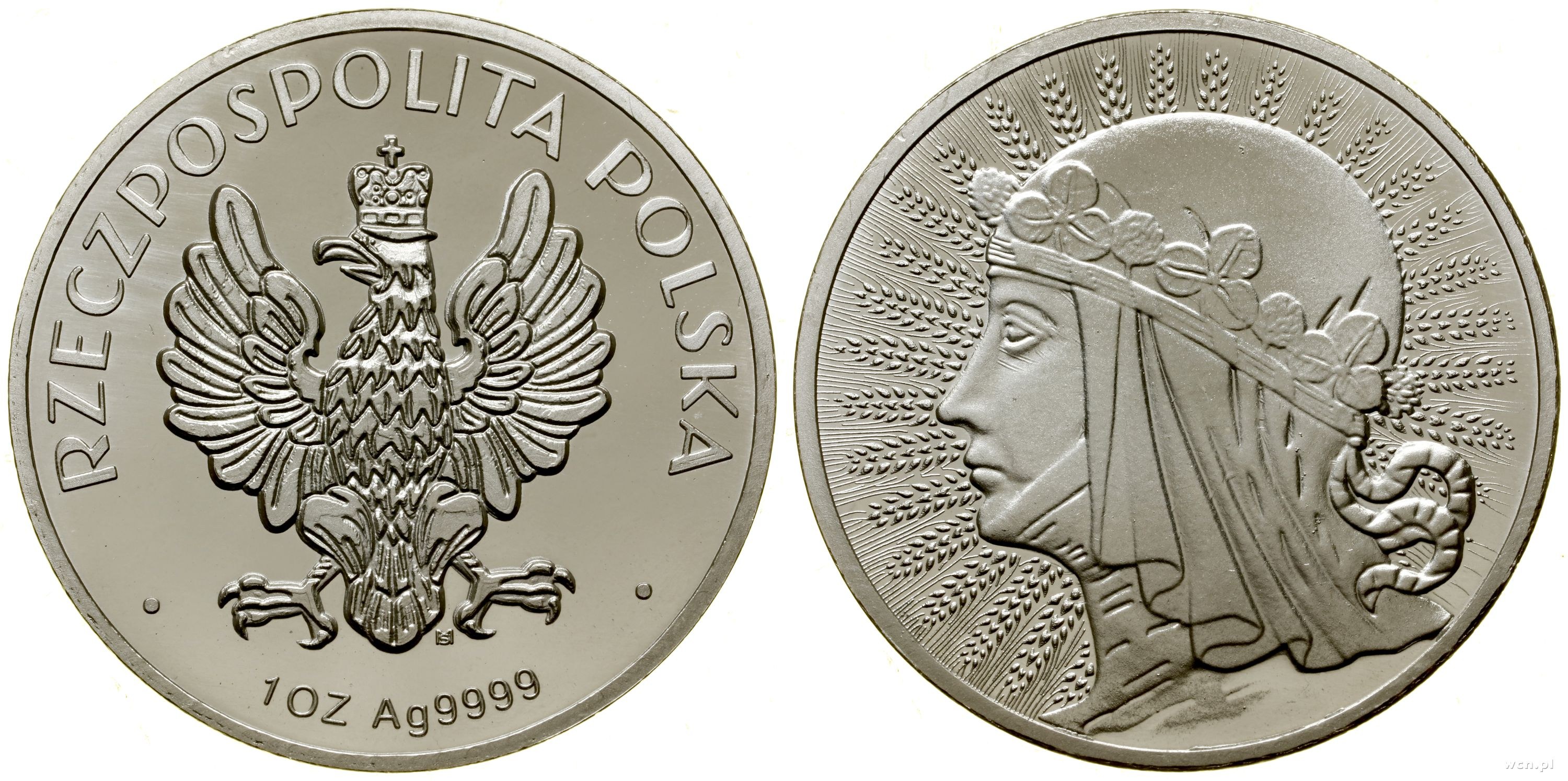 srebro próby 999 wagi 1 uncji, stemple lustrzane, moneta w plastikowym kapslu