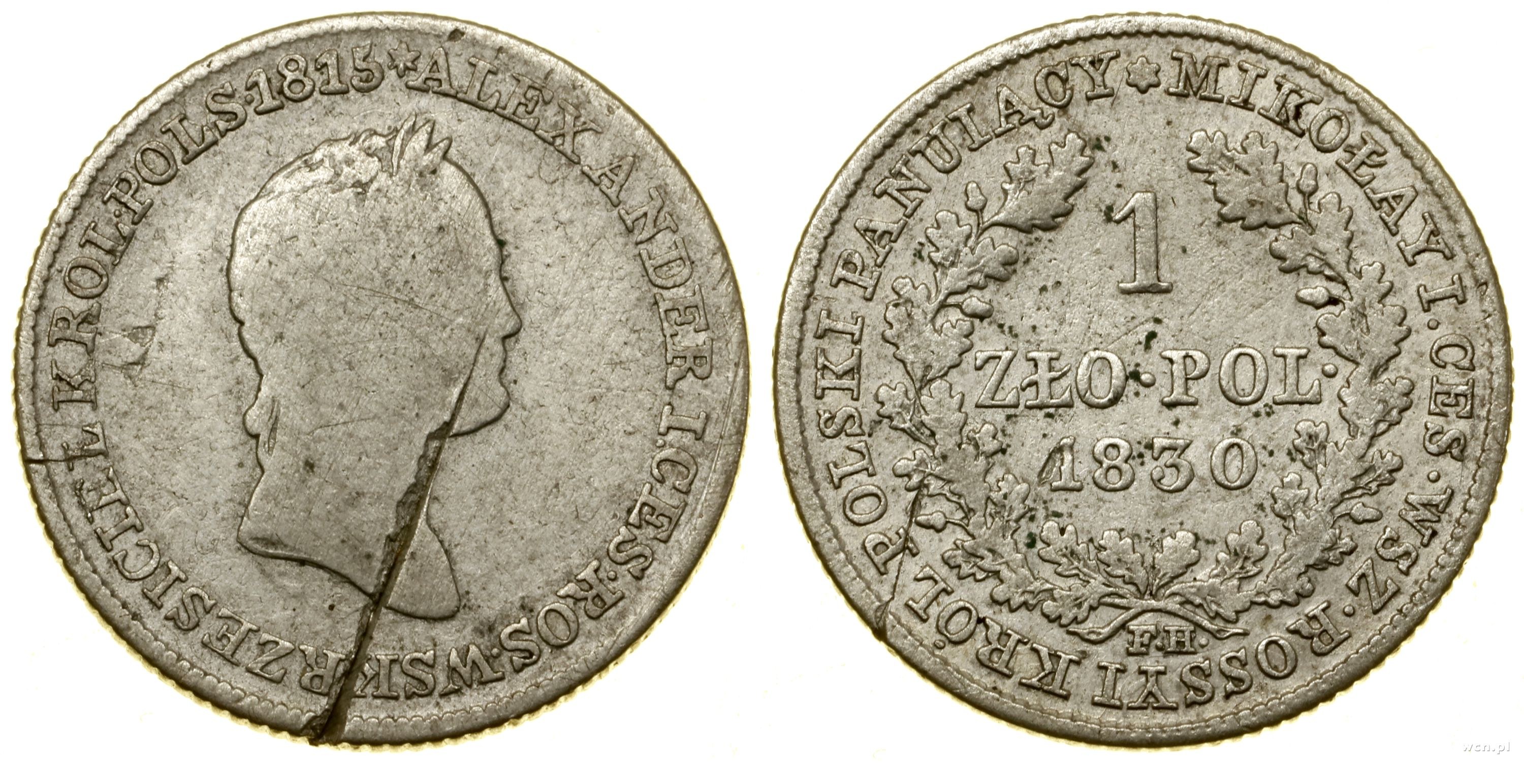 odmiana z kropkami po ZŁO i POL, pod wieńcem z liści dębowych inicjały mincerza FH (Fryderyk Hunger)