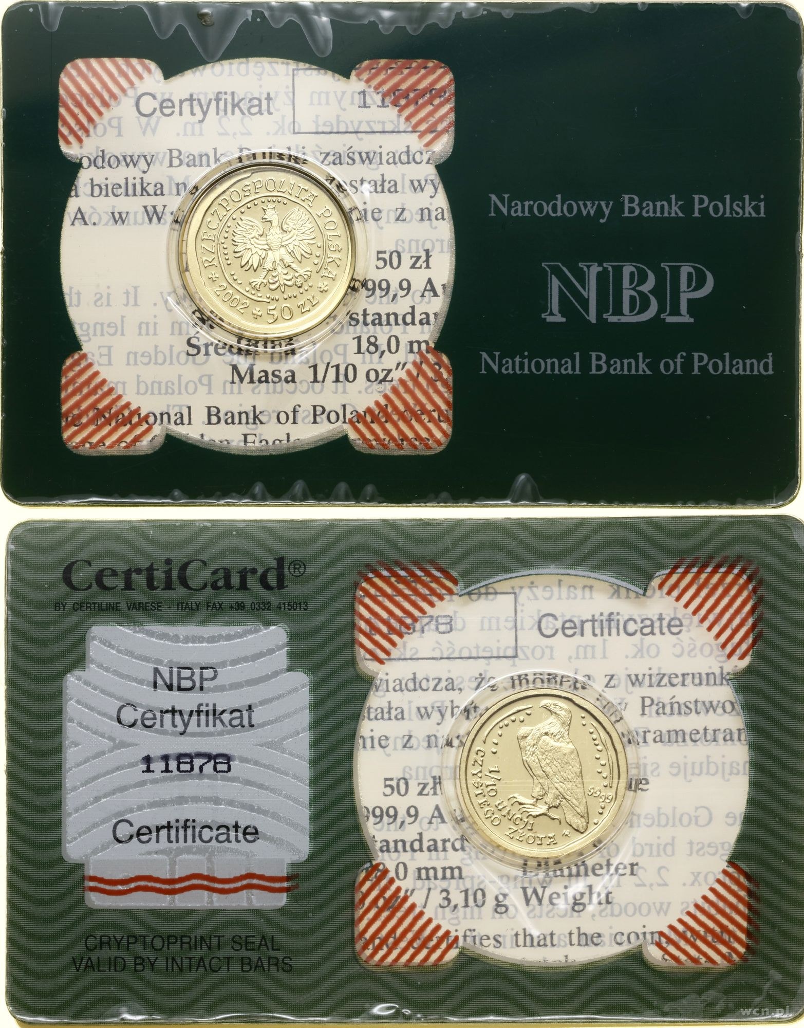złoto ok. 3.1 g, próby 999.9, idealnie zachowana moneta w oryginalnym opakowaniu NBP z certyfikatem nr 11878