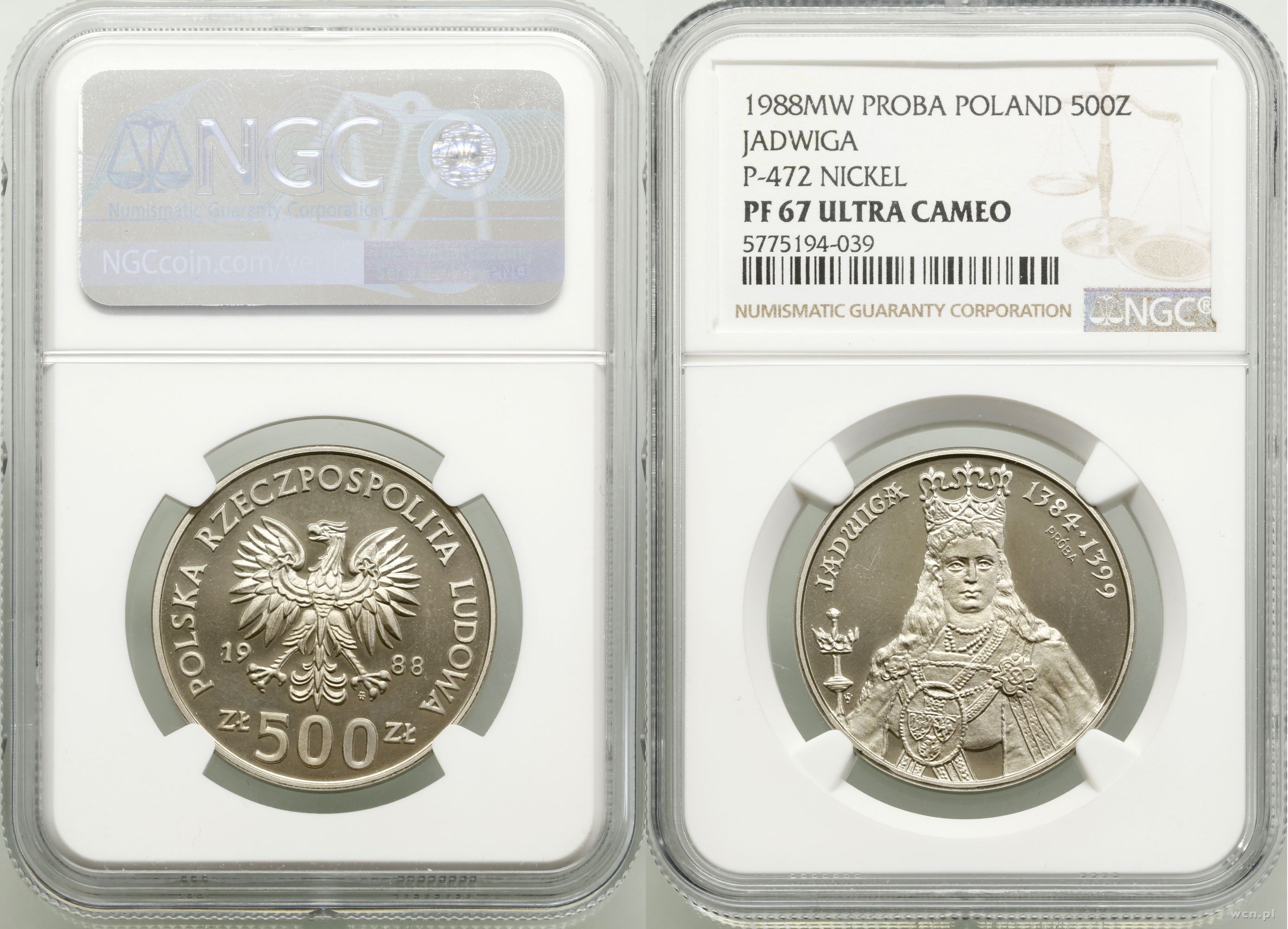 nikiel, nakład 500 sztuk, wyśmienite , w opakowaniu firmy NGC nr 5775194-039 z oceną PF67 ULTRACAMEO