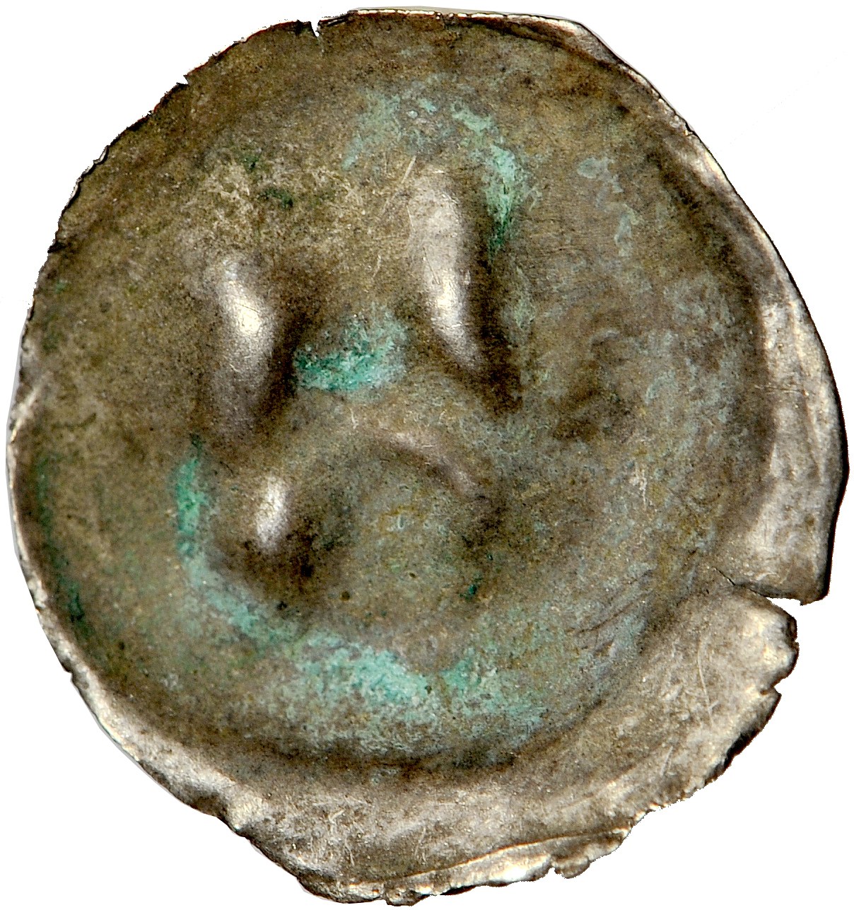 Polska, brakteat guziczkowy, 4. ćwierć XIII wieku.