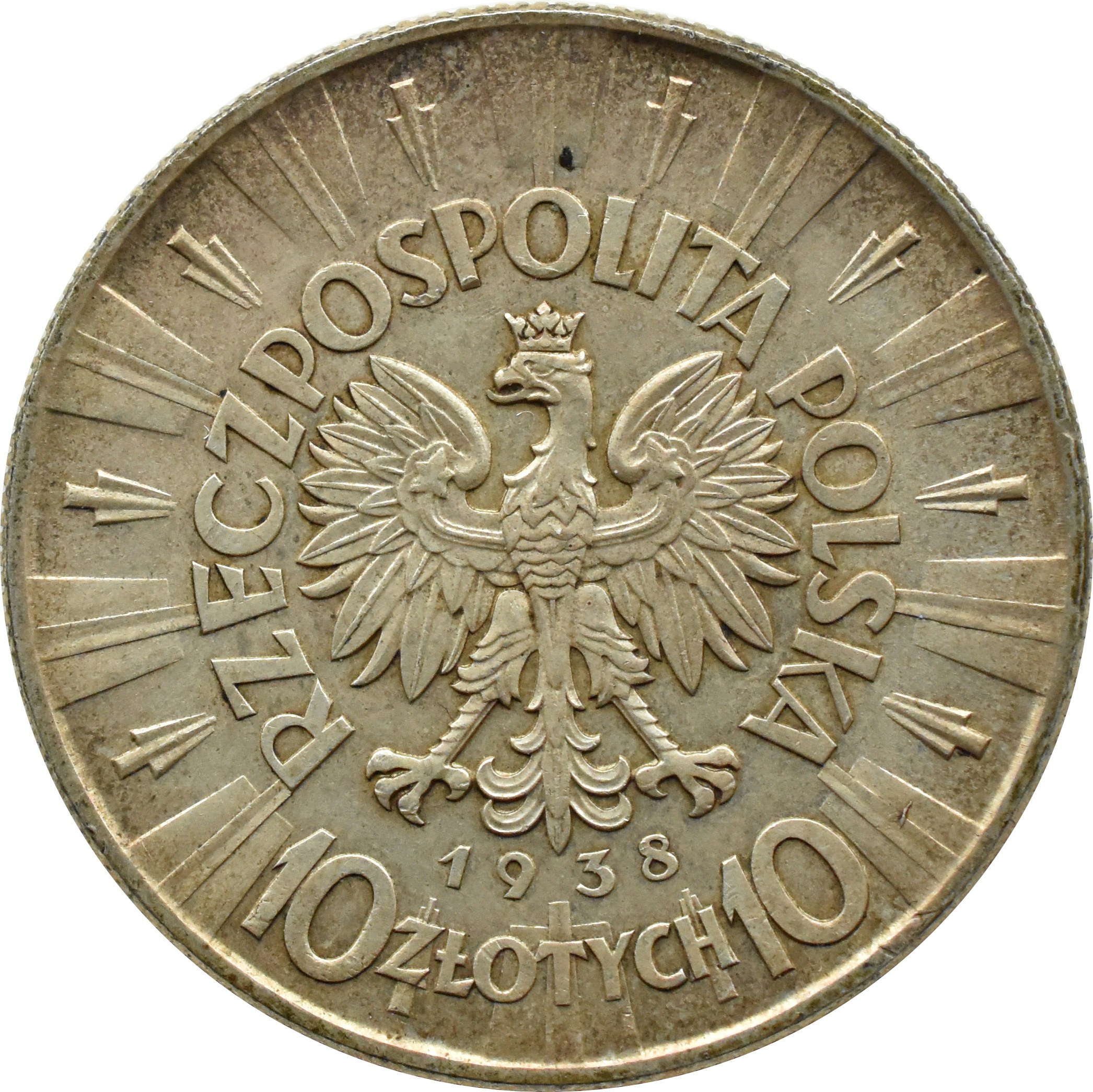 Polska, II RP (1918-1939), Józef Piłsudski, 10 złotych 1938, mennica Warszawa, UNC