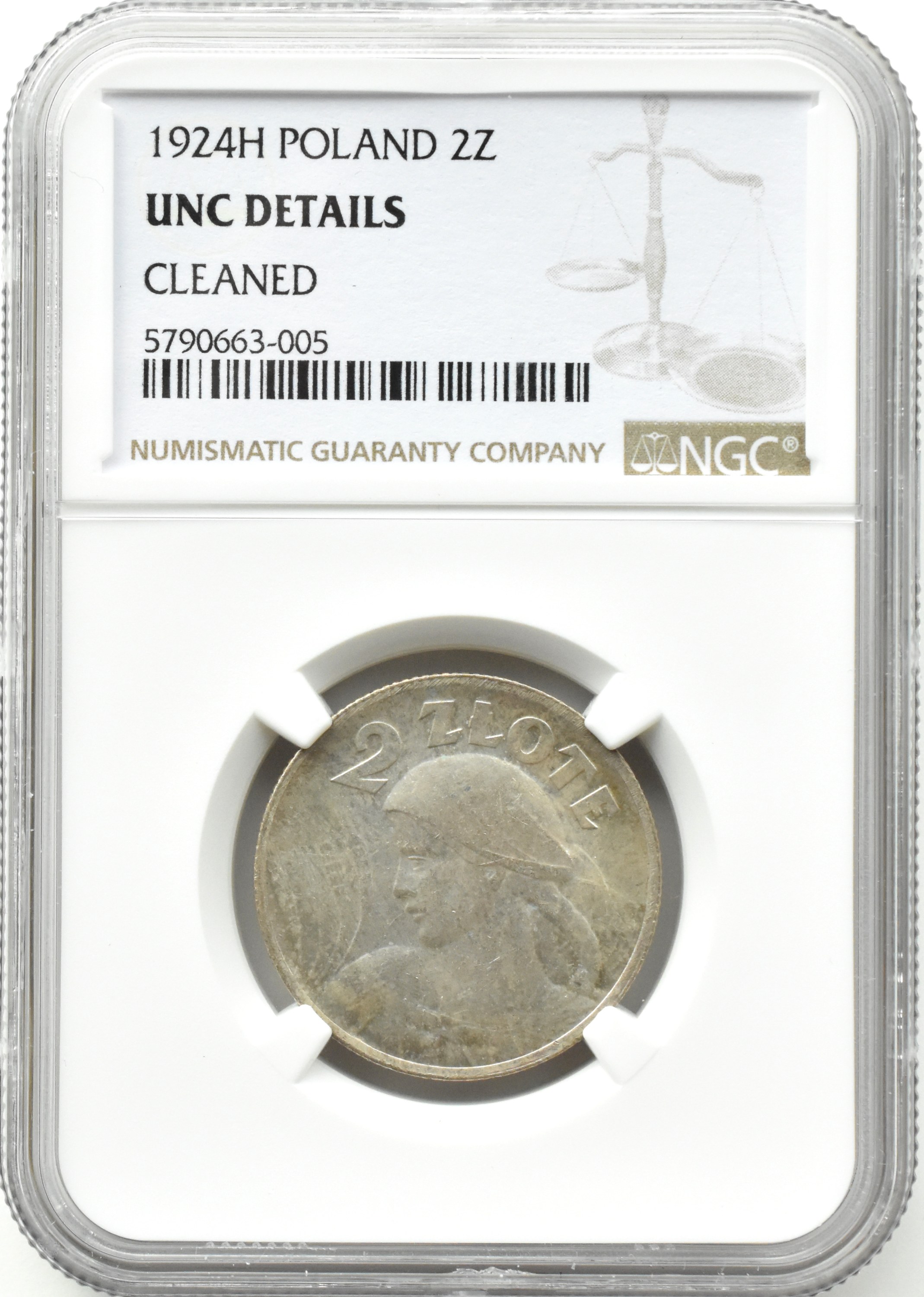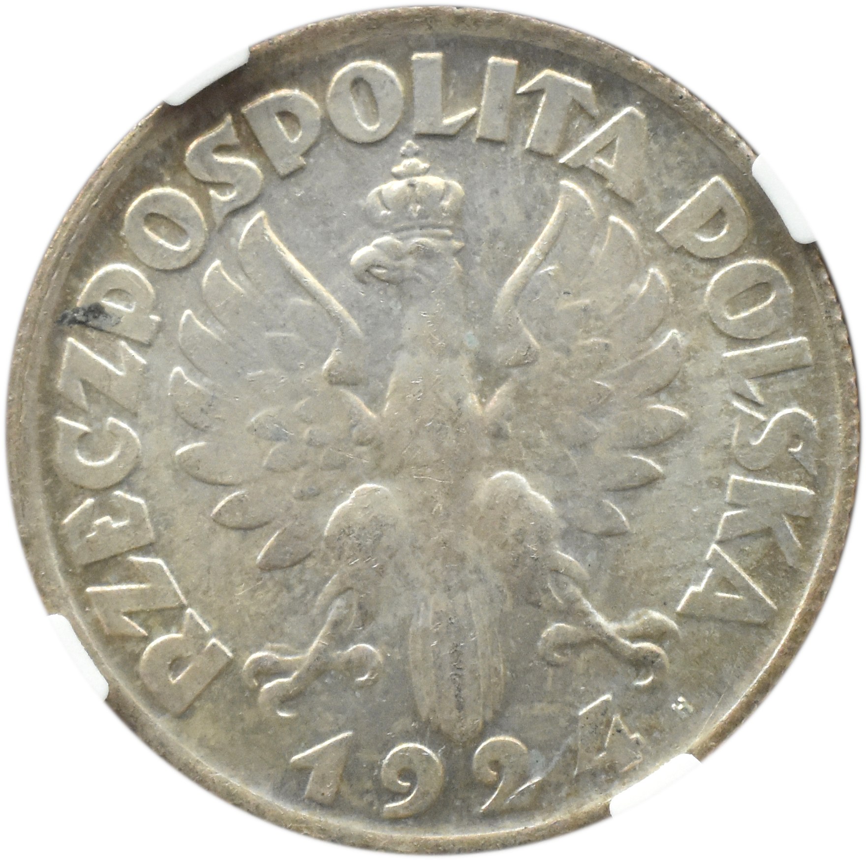 Polska, II RP (1918-1939), Kłosy - kobieta, 2 złote 1924 H, mennica Birmingham, NGC UNC Details