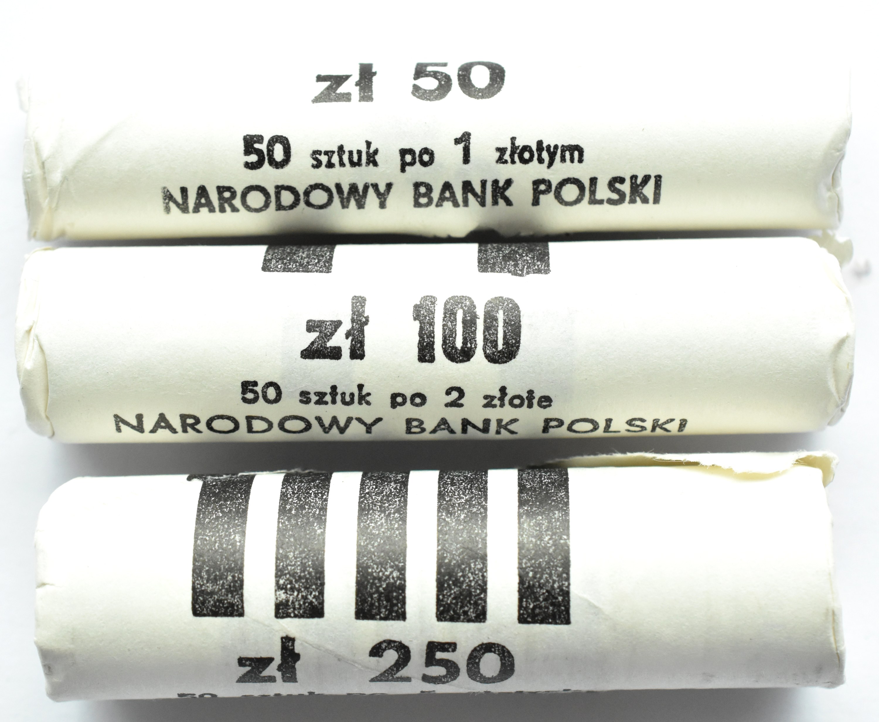III RP, 1-5 złotych 1990, rolki bankowe 3X50 sztuk, mennica Warszawa, UNC