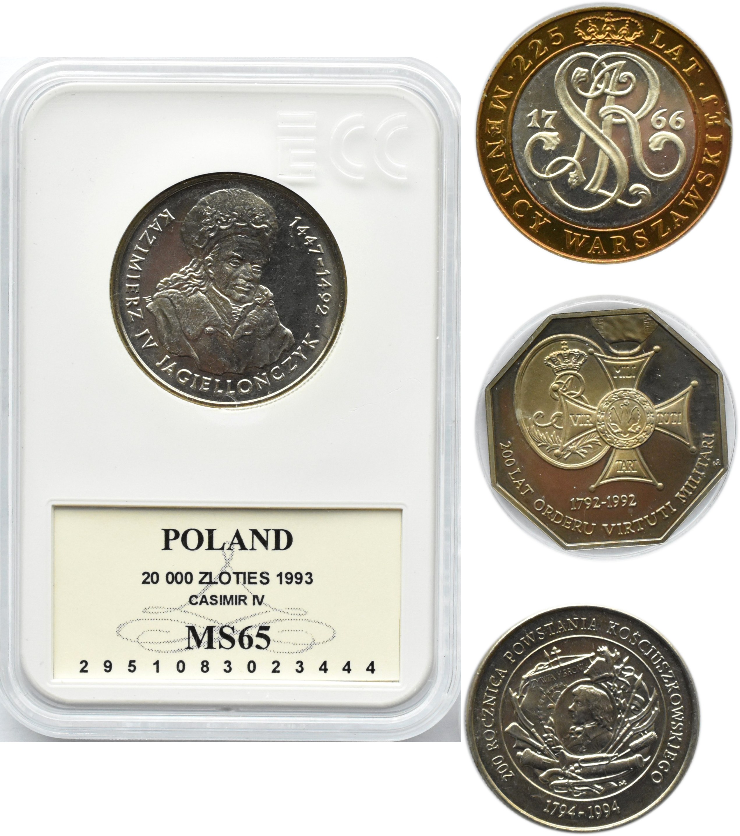 Polska, III RP, lot 4 monet, Warszawa, 4 sztuki 20000, 50000 złotych 1991-1994