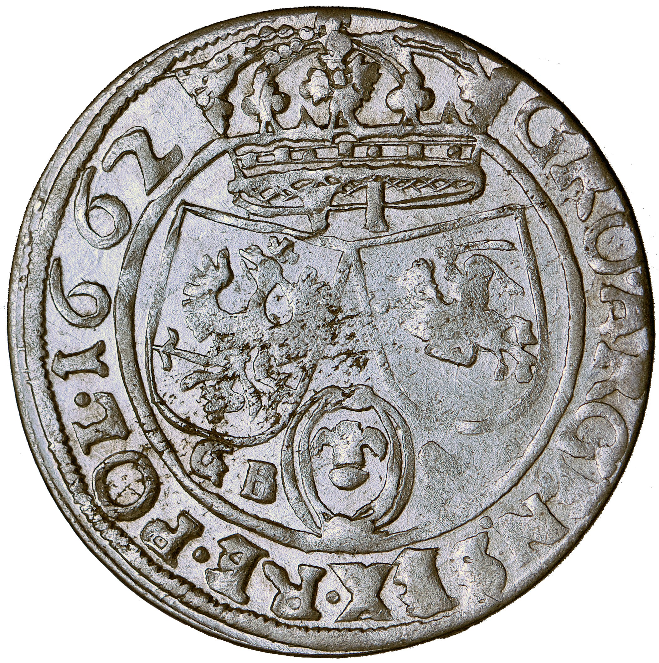 Polska, Jan Kazimierz, Korona, szóstak, 1662, men. Lwów, G.B. Amoretti.