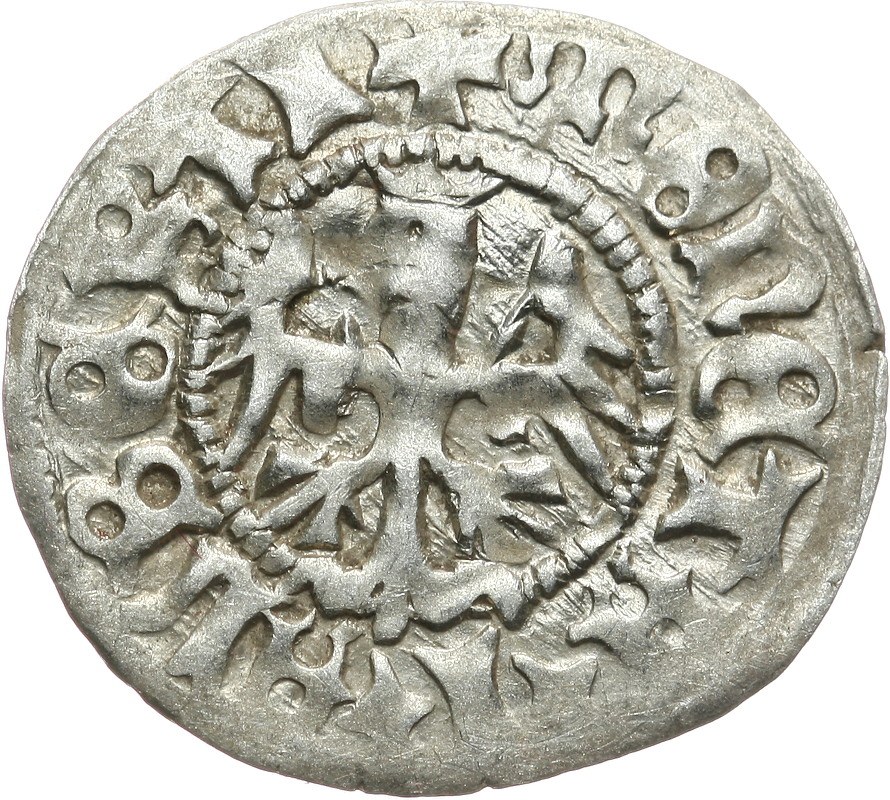 Piękna sztuka. Menniczy stan zachowania. Pierwszy typ koronnych półgroszy Jana Olbrachta, z herbem Poraj (Piotra Kurozwęckiego) pod koroną. Aw: Orzeł, MONETA I ALBERTI; Rw: Korona, REGIS POLONIE.