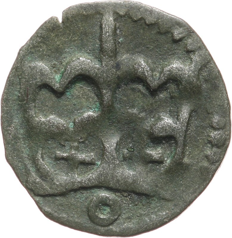 Kraków, pierścień pod koroną, 0.37 g, moneta przypisywana dawniej Janowi Olbrachtowi, według najnowszych badań uważana jako denar Kazimierza Jagiellończyka (patrz Frynas s. 257).