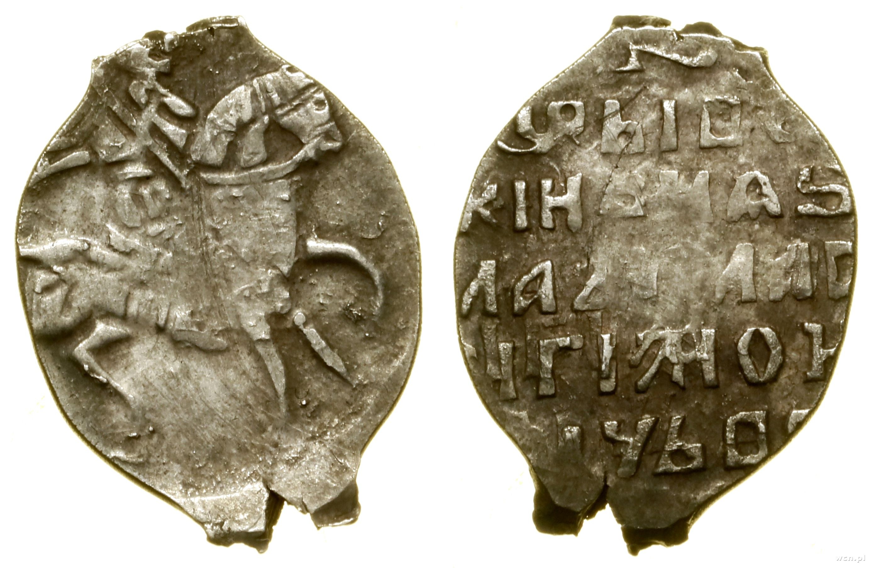 Aw: Jeździec na koniu z włócznią w prawo, Rw: Poziomo zapisana legenda