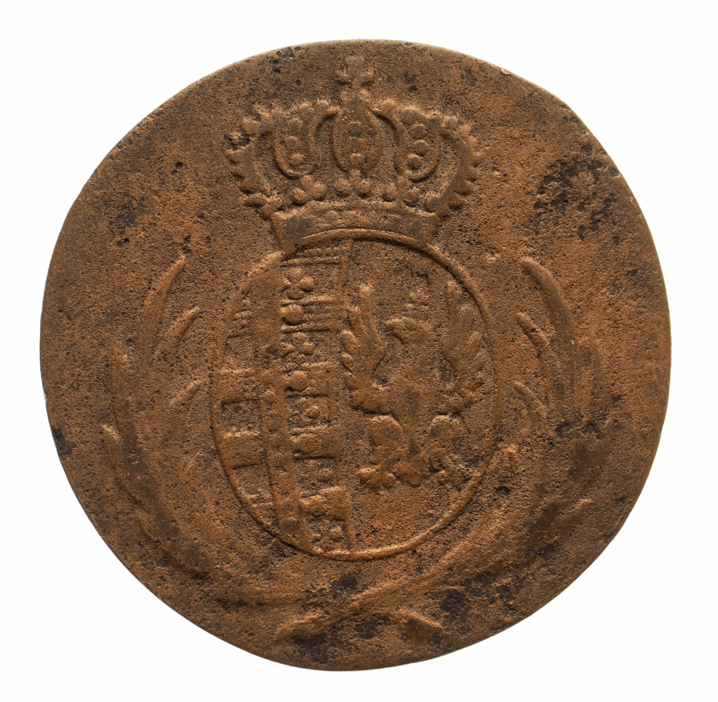 Moneta z długiego obiegu w naturalnej patynie.