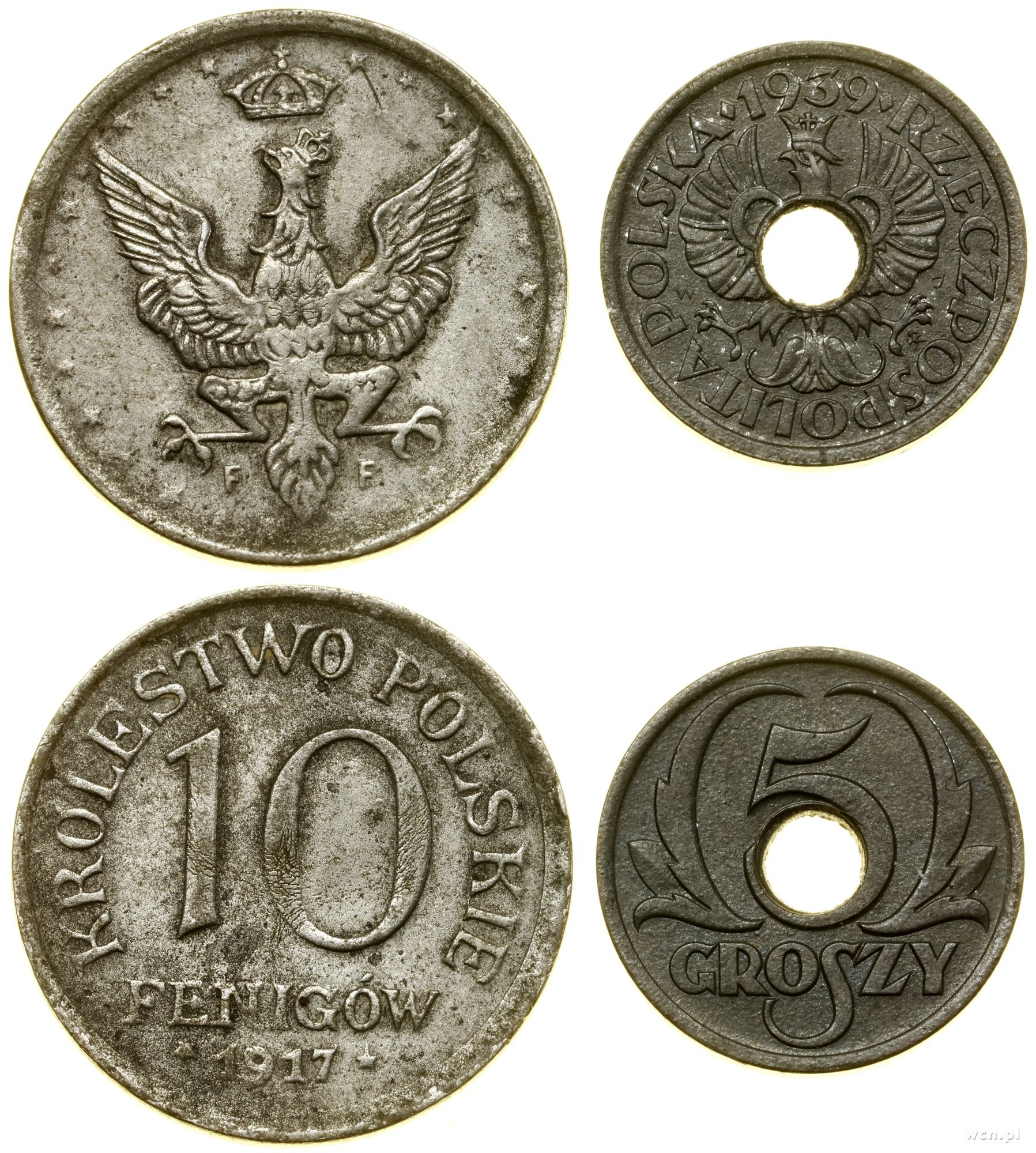 10 fenigów 1917 F, Stuttgart / 5 groszy 1939, Warszawa