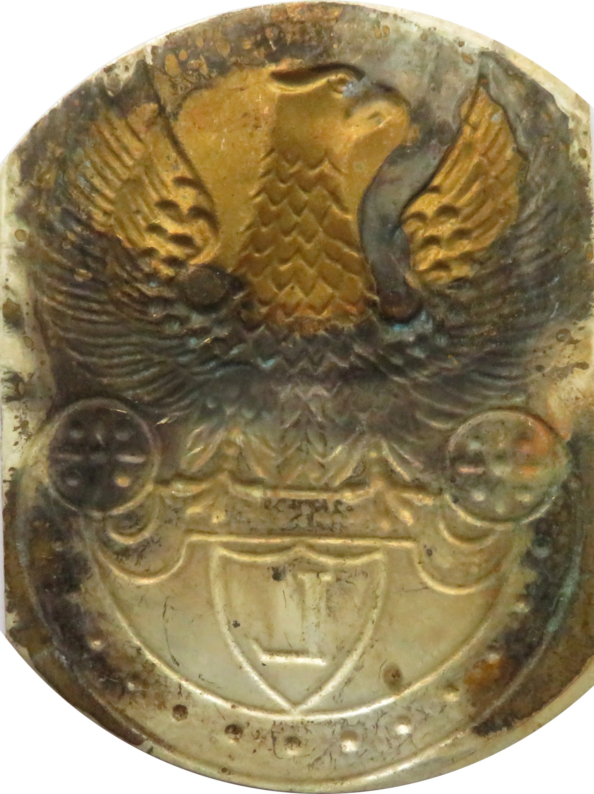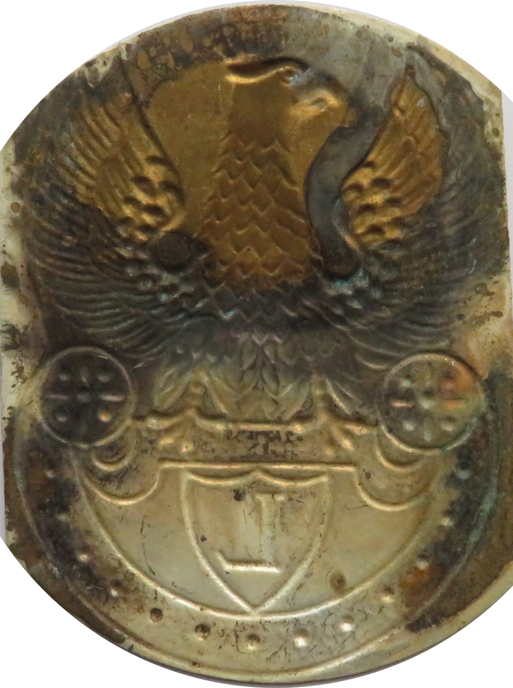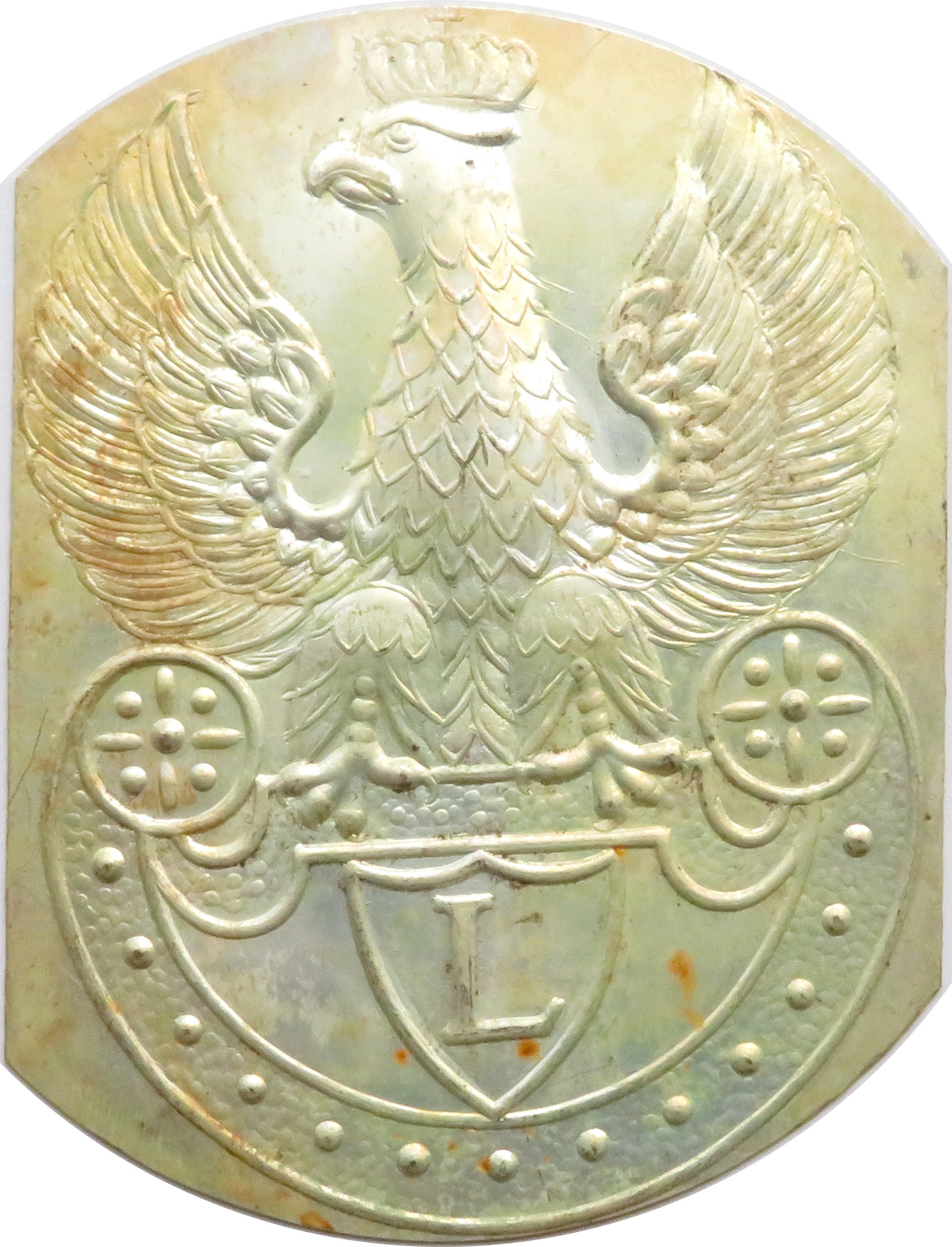 Polska, II RP, odcisk orzełka legionowego w koronie (półprodukt), blacha mosiężna, posrebrzana DUŻA CIEKAWOSTKA i RZADKOŚĆ