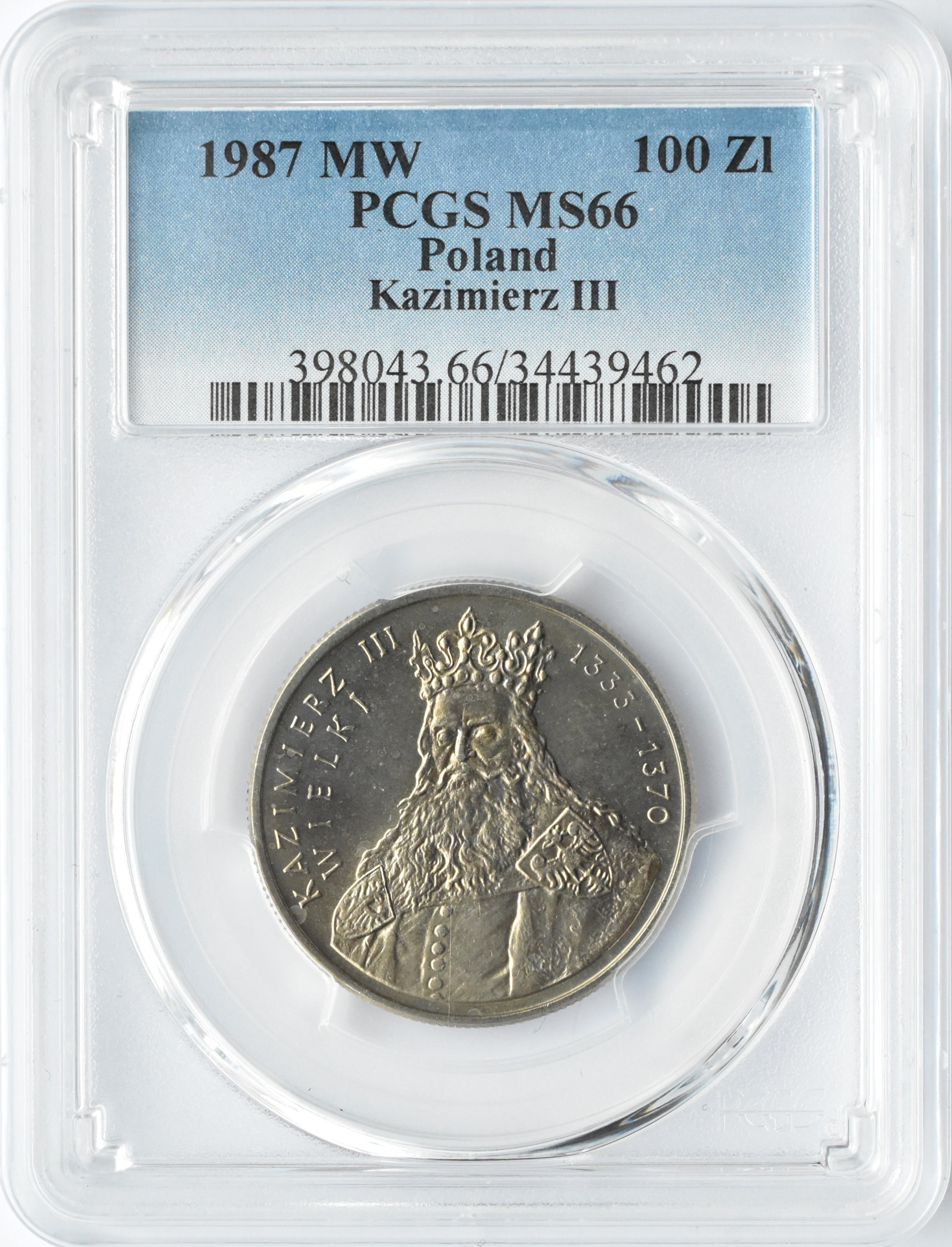 Polska, PRL, 100 złotych 1987, Kazimierz Wielki, Warszawa, PCGS MS66