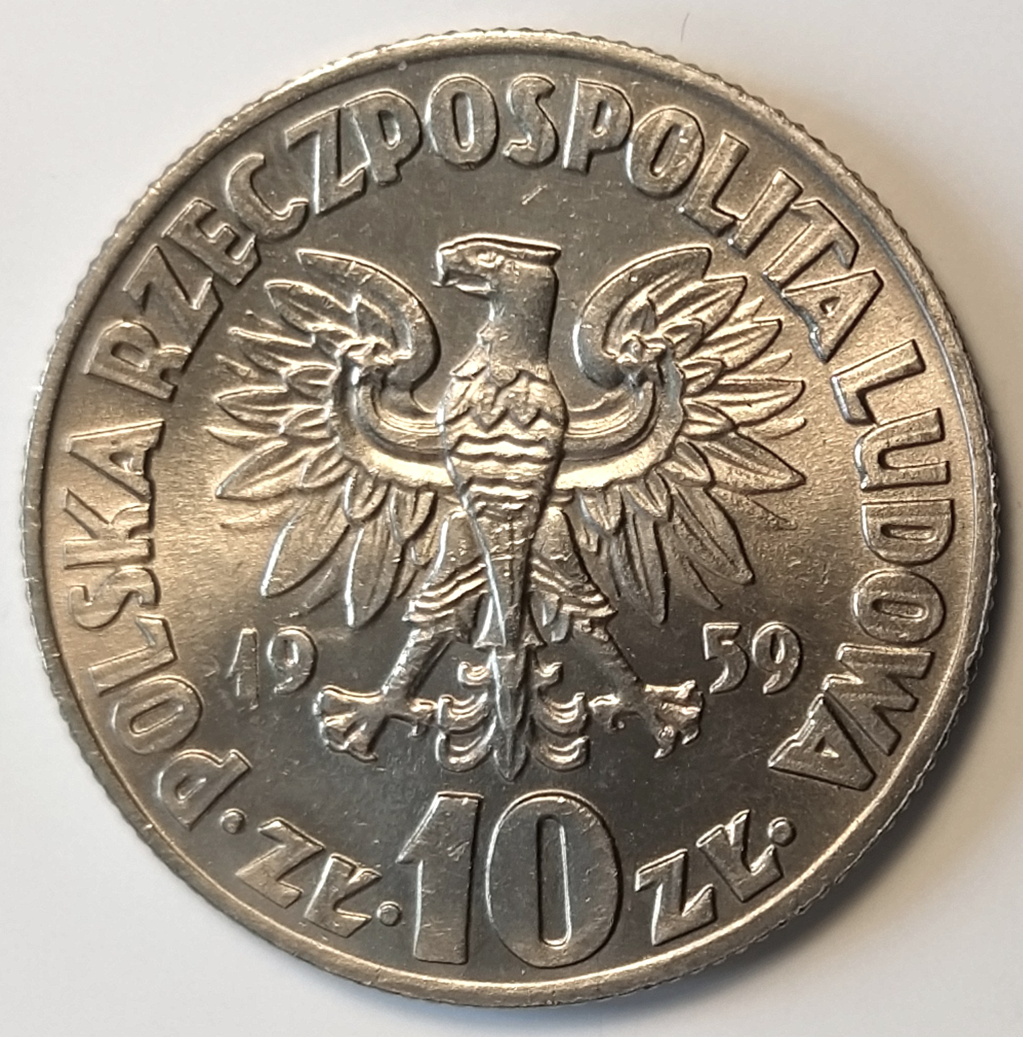 Widoczny, w szczególności na szyi Kopernika, efekt ducha, tj. negatym awersu.
