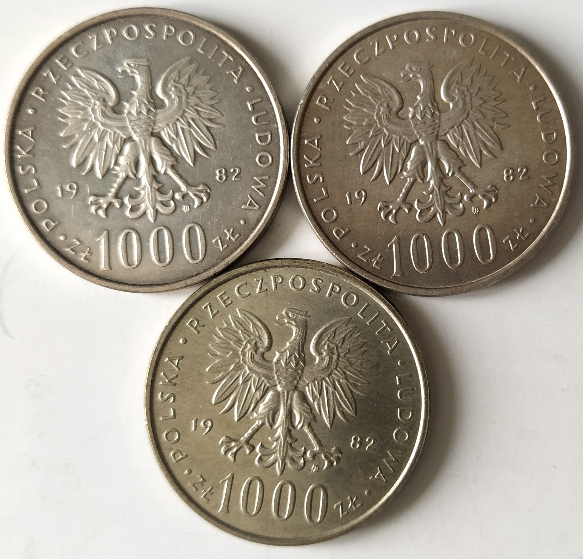 Polska, PRL (1944-1989), 1000 złotych 1982, Jan Paweł II - zestaw 3 sztuk