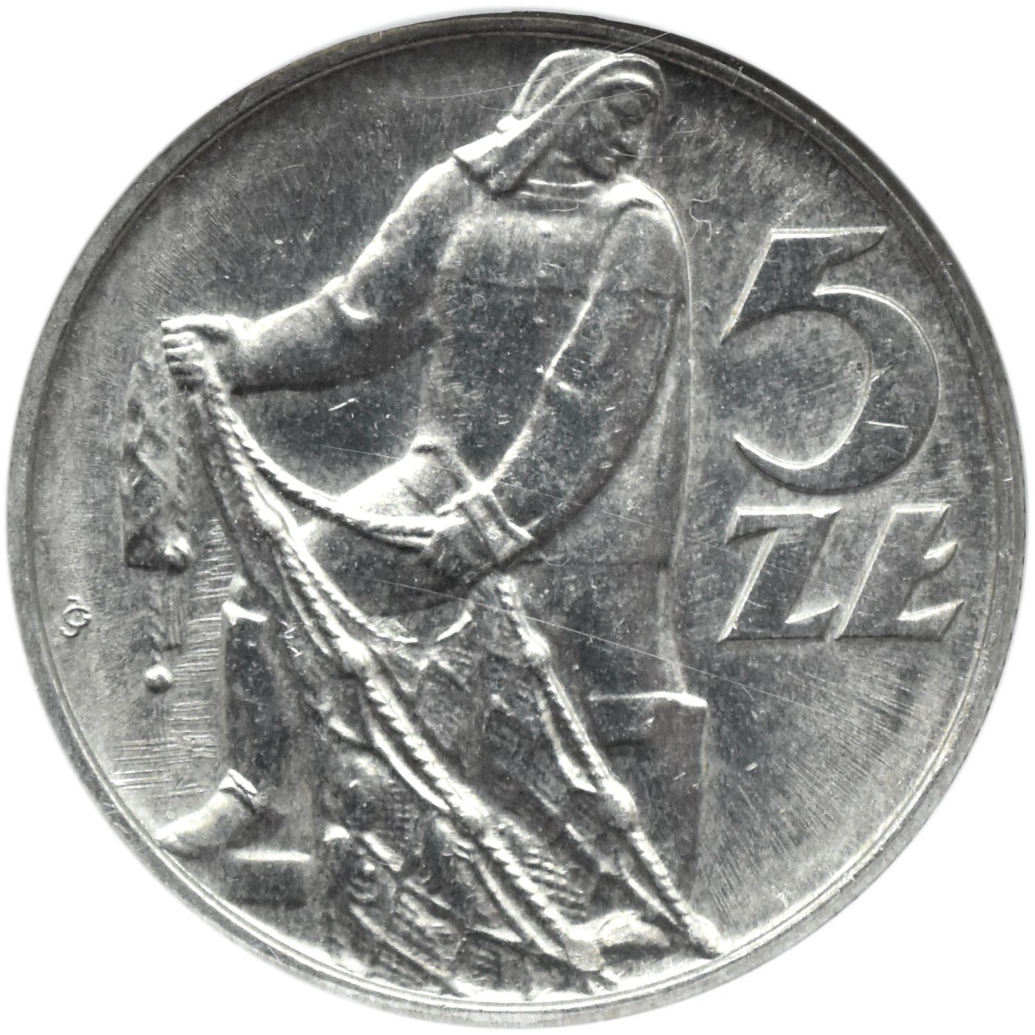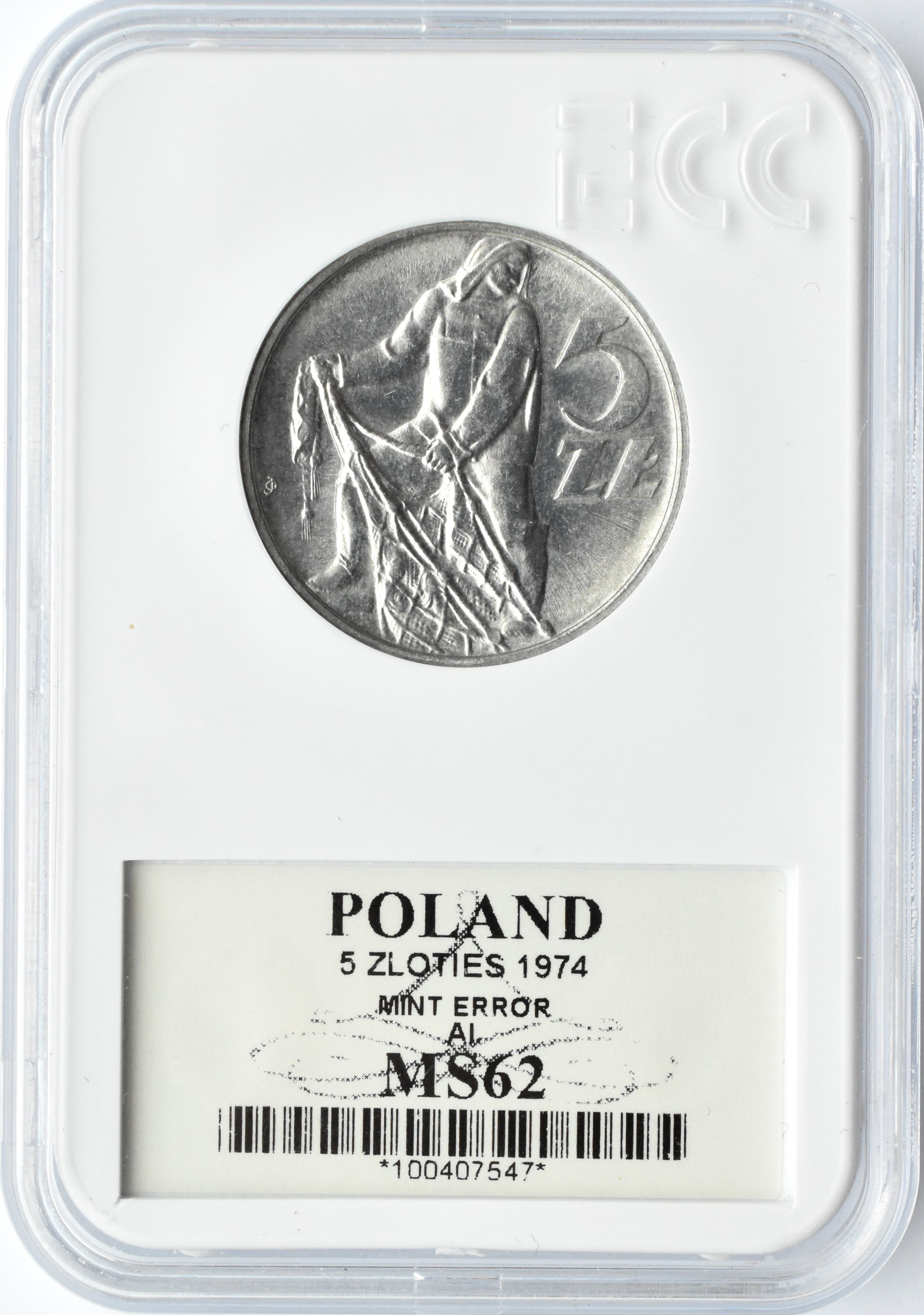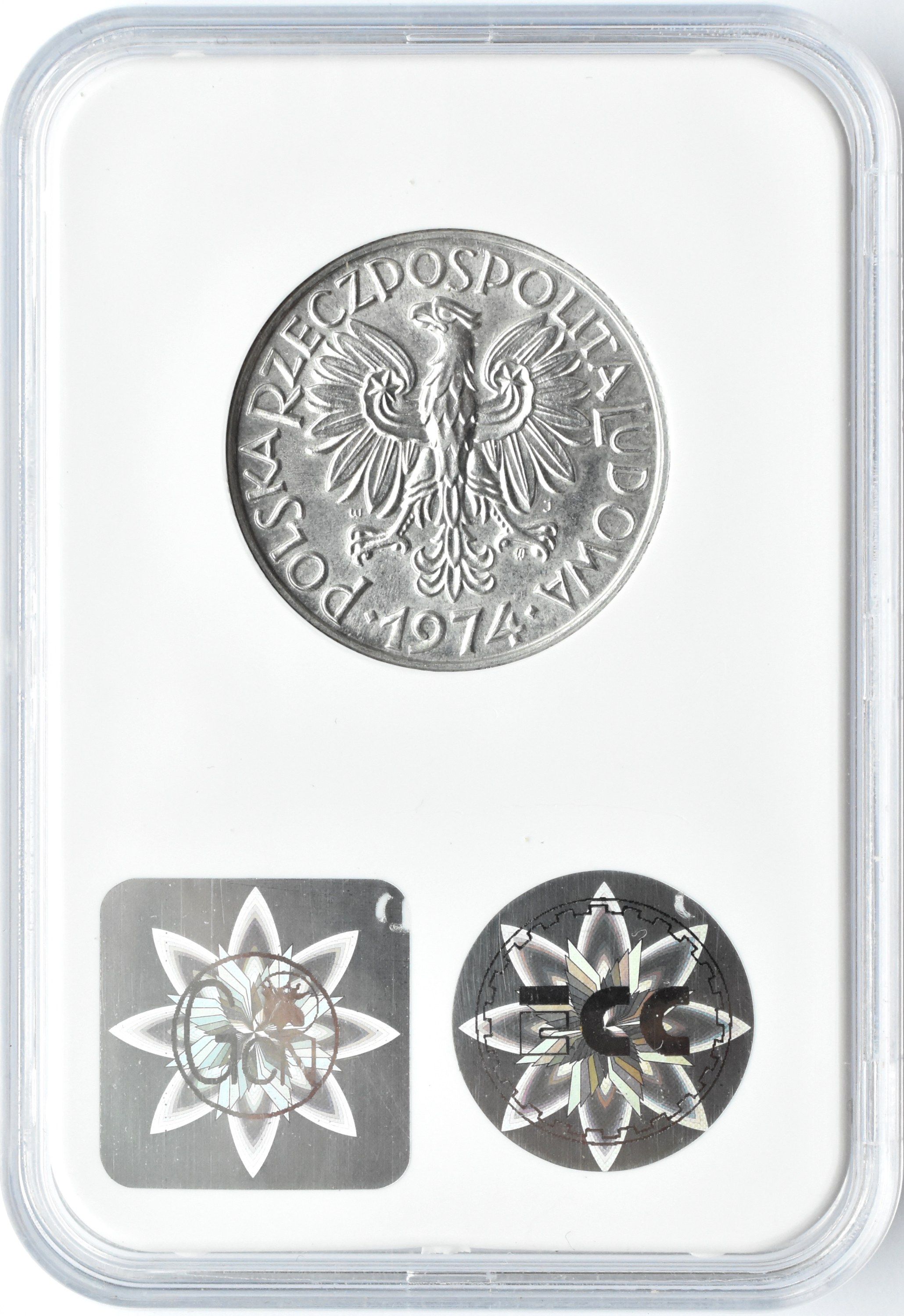 Polska, PRL, 5 złotych 1974, Rybak, mennica Warszawa, GCN MS 62 MINT ERROR