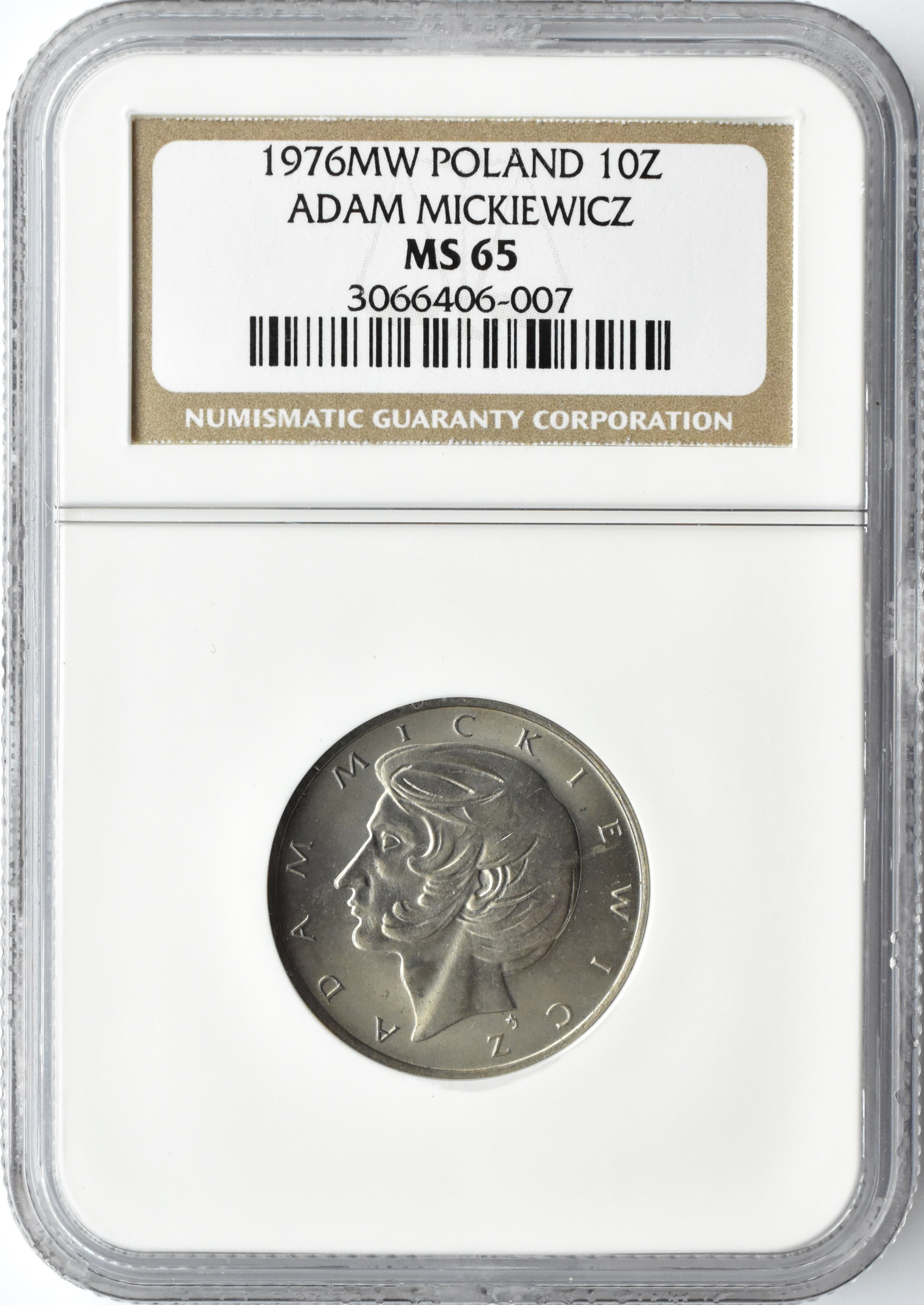 Polska, PRL, A. Mickiewicz, 10 złotych 1976, Warszawa, NGC MS65