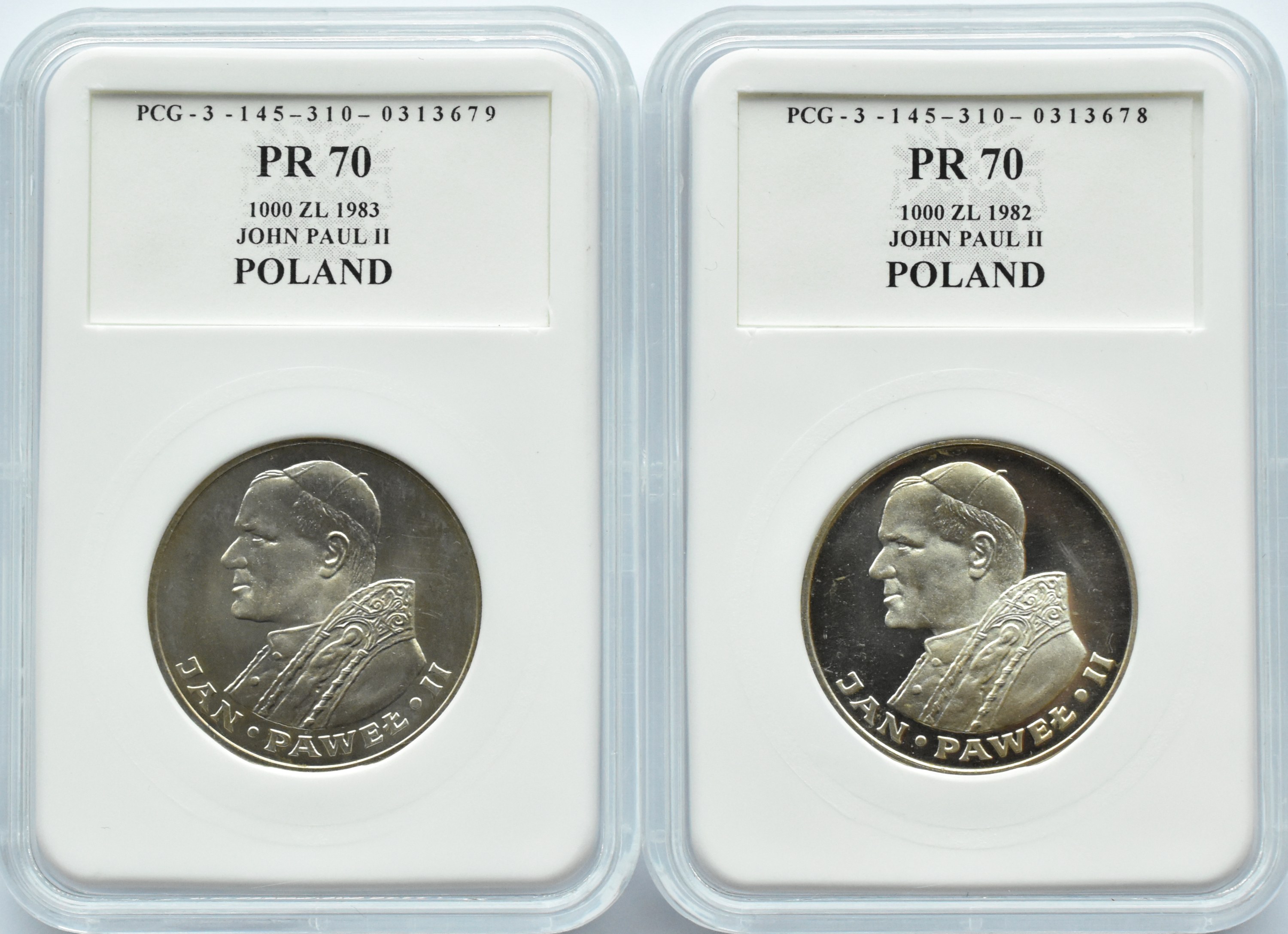 Polska, PRL, lot 1000 złotych 1982-83, Jan Paweł II, mennica Warszawa, PCG PR70