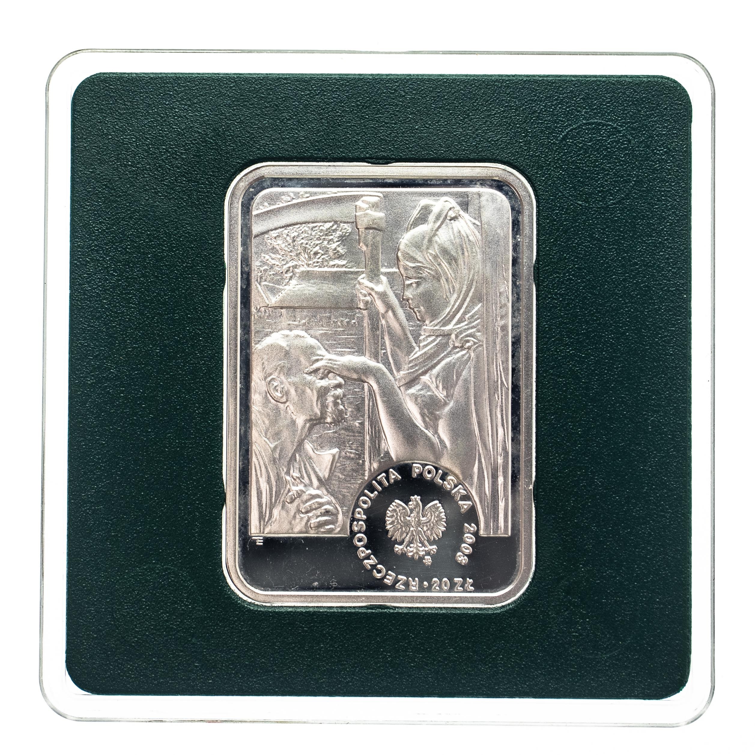 Srebro próby 925, stemple lustrzane, nakład 64.000 sztuk. Moneta w plastikowym pudełku posiada kilka mikrorysek i delikatne odciski palców.