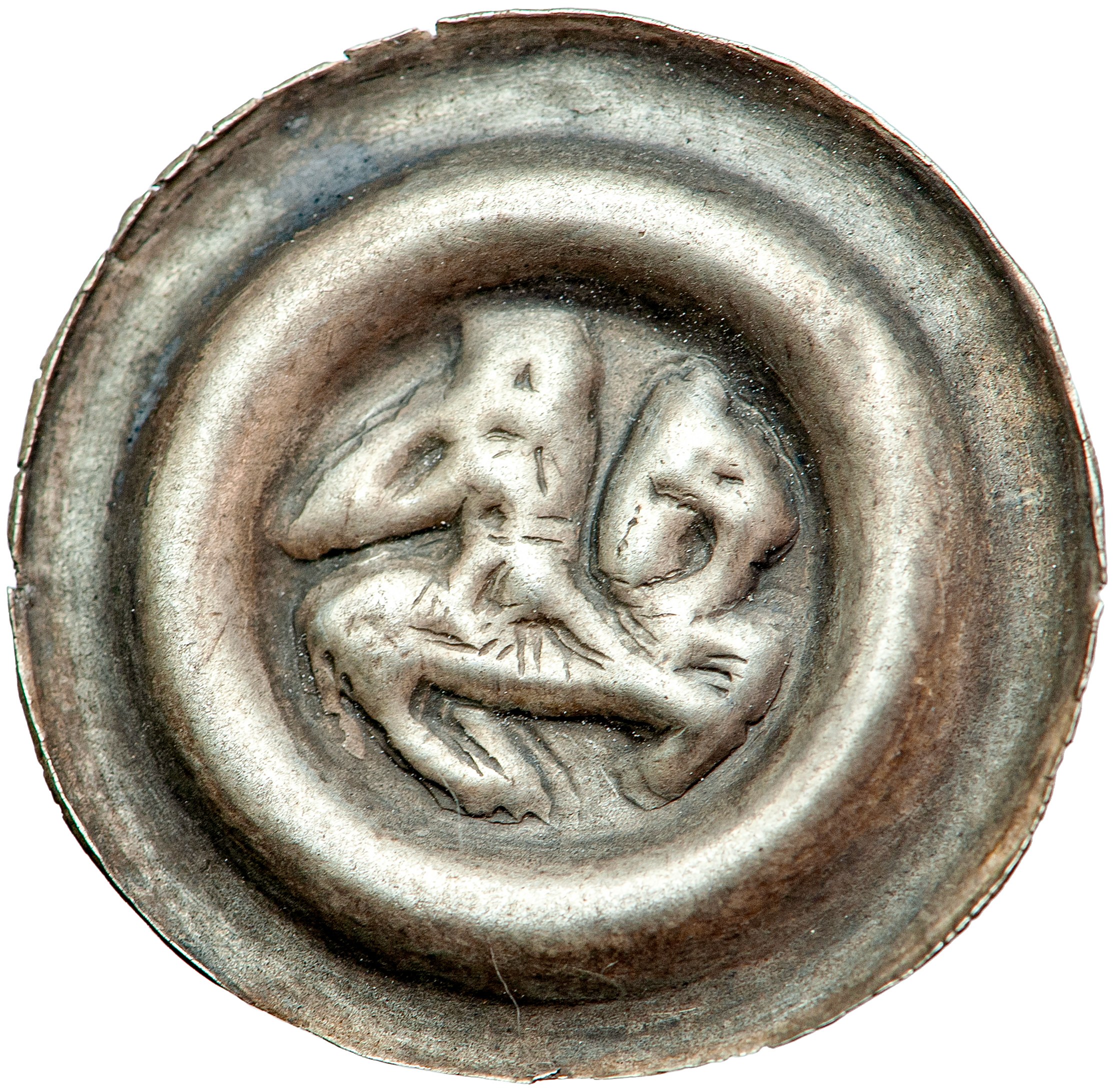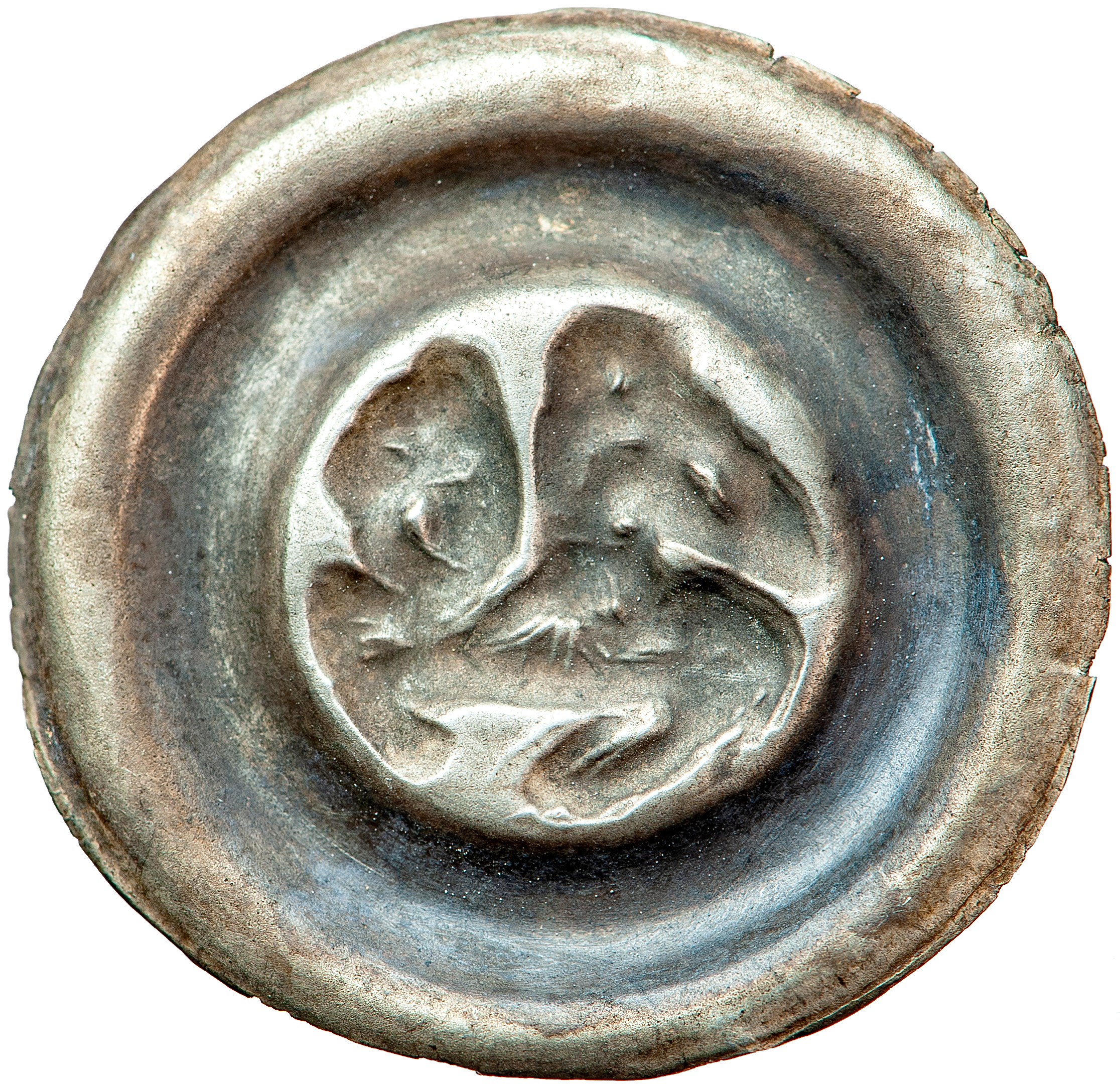 Stan II+, piękna patyna, świetnie zachowany, duży i efektowny brakteat.
