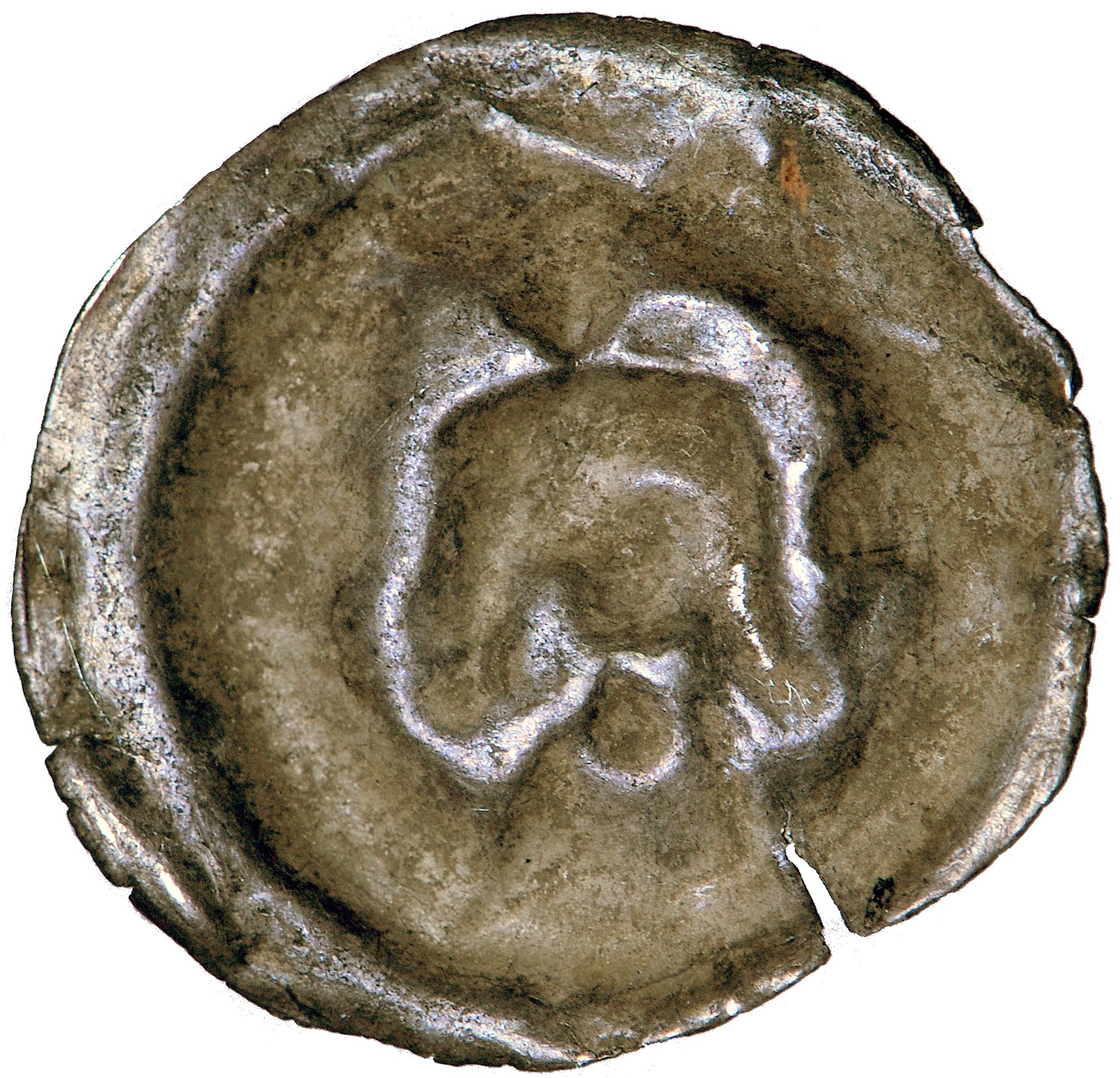 W skarbie z Wielenia były tylko 3 egzemplarze, moneta wielkiej rzadkości. Ogląd egzemplarza (a nie niewyraźnych rycin) pozwala stwierdzić, że wokół głowy są nie kulki, jak sądził Beyer, ale małe krzyżyki. Jest to zatem najprawdopodobniej przedstawienie Chrystusa, co pozwala przypuszczać, że emitentem było któreś biskupstwo (arcybiskupstwo gnieźnieńskie w Żninie lub może poznańskie w Krobi).