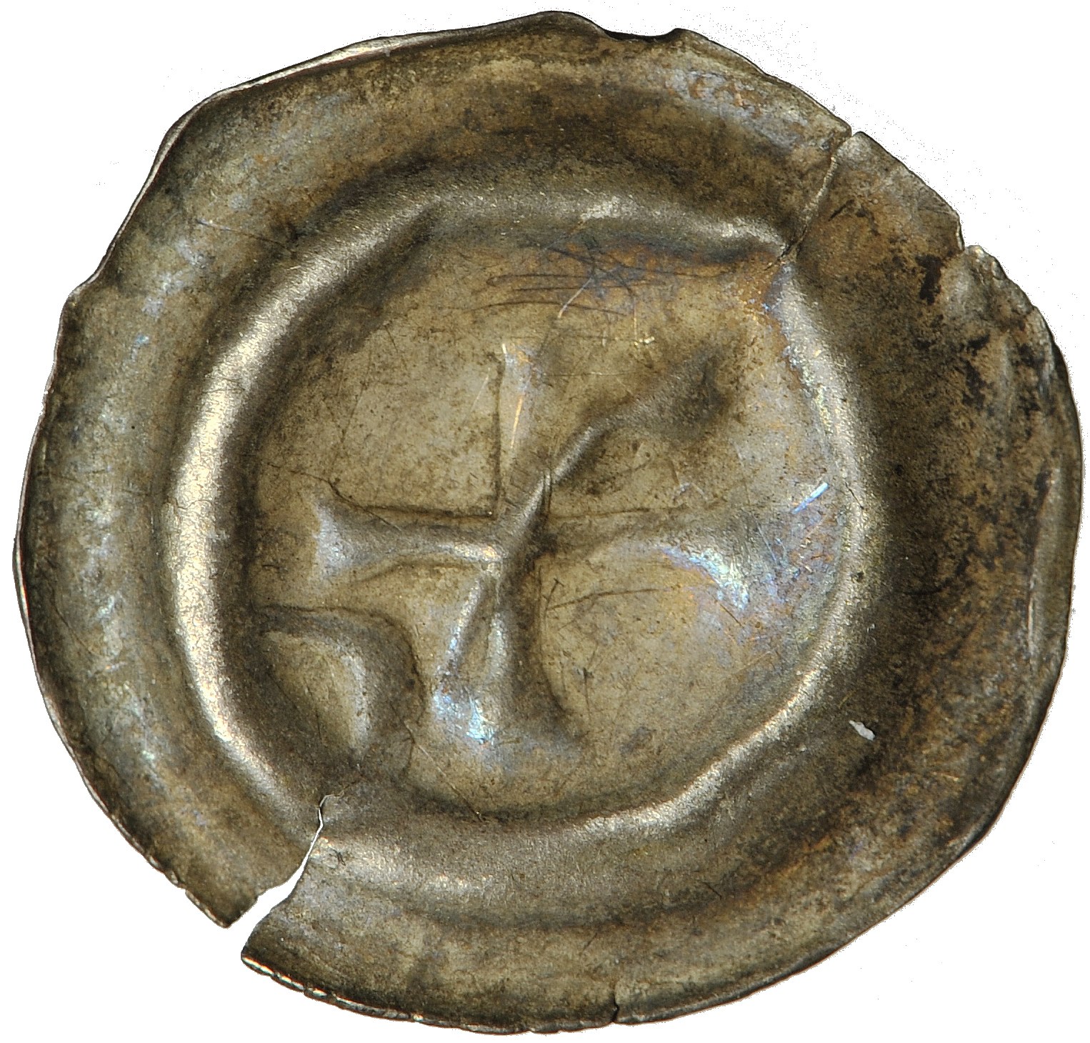 Polska, Wielkopolska (?), brakteat guziczkowy "Krzyż, księżyc i gwiazda", 2. połowa XIII w.