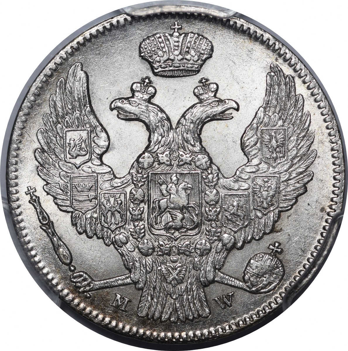 Menniczy stan zachowania monety potwierdzony wysoką oceną PCGS. Piękny