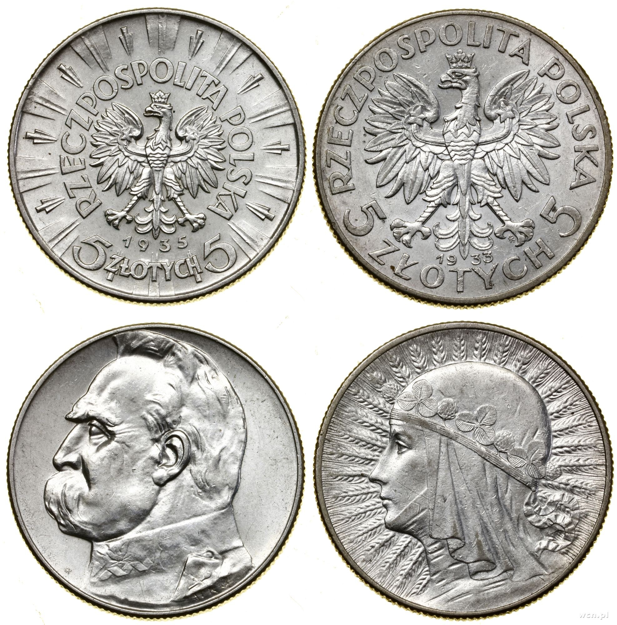 w zestawie: 5 złotych 1933 głowa kobiety w czepcu oraz 5 złotych 1935 Józef Piłsudski